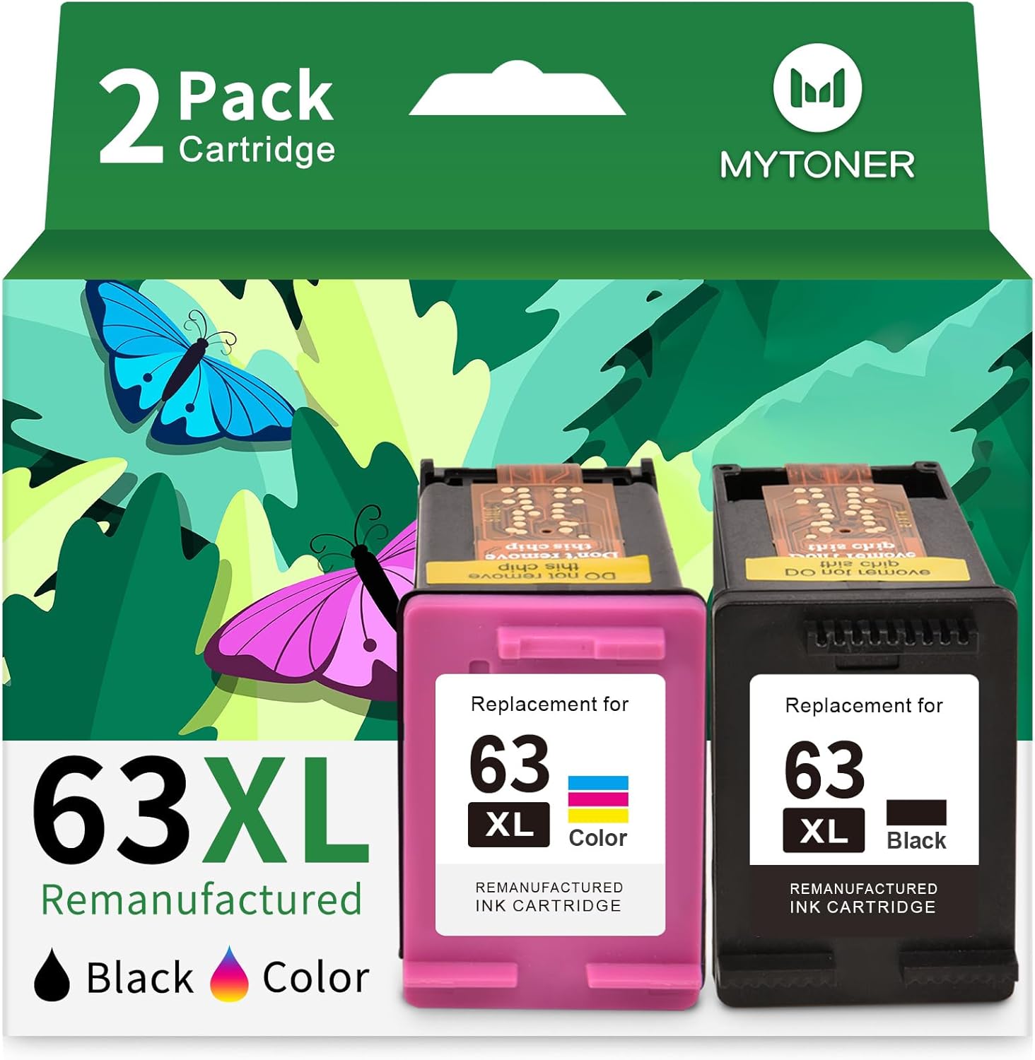 MYTONER 63XL Color Ink Cartridges Replacement for HP Ink 63 63XL Ink Cartridge Combo Pack for HP OfficeJet 3830 4650 4652 4655 5255 5258 Envy 4520 4512 DeskJet 3630 3632 Printer Ink Cartridges