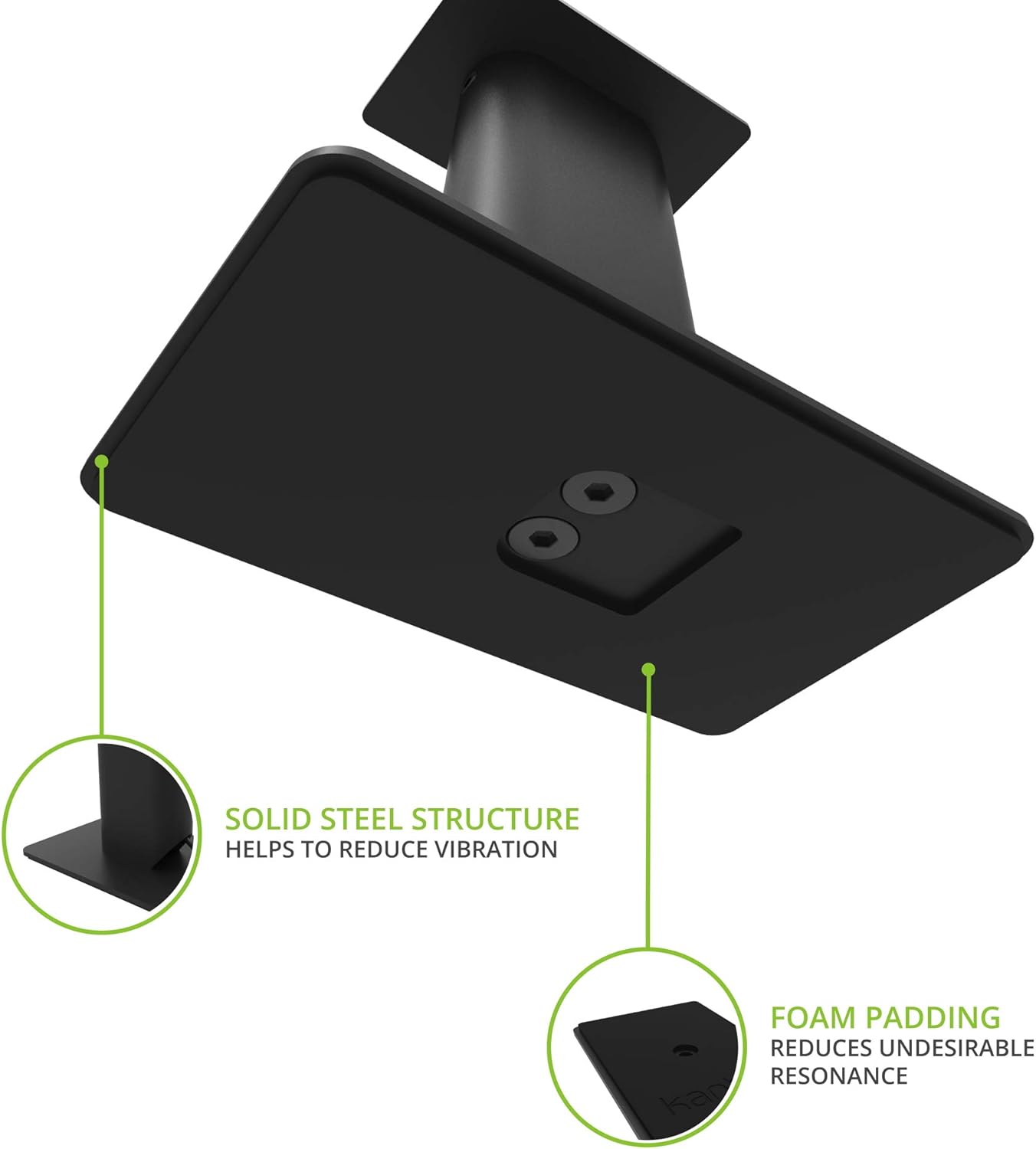 - IMPROVED CLARITY - Surface vibrations caused by your speakers can result in muddy sound. SP9 desktop speaker stands prevent this by utilizing heavy steel and closed cell foam padding to absorb as much resonance as possible.