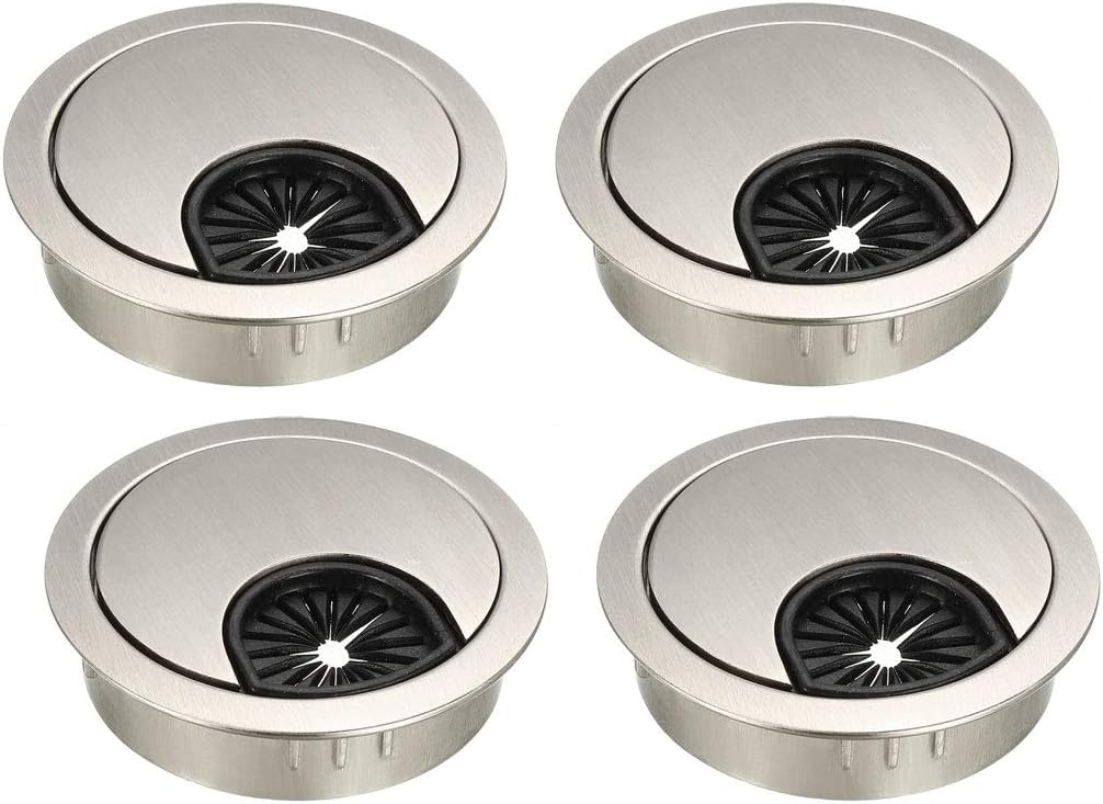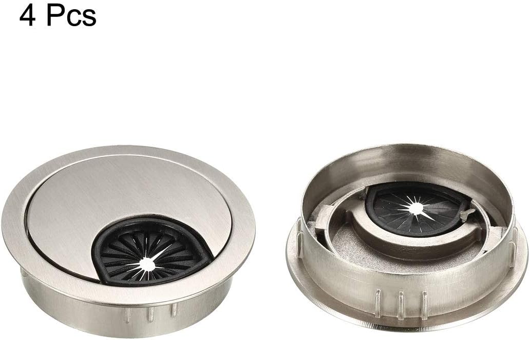 uxcell Cable Hole Cover, 2Inch/50mm Zinc Alloy Desk Wire Cord Cable Grommets Hole Cover for Office PC Desk Cable Cord Organizer, 4Pcs Wire Drawing Silver