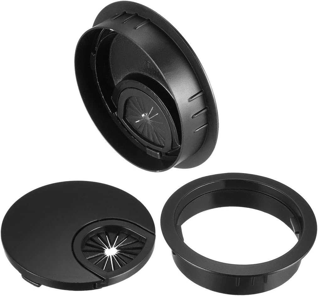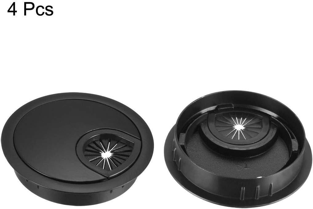 uxcell Cable Hole Cover, 2.4Inch/60mm Zinc Alloy Desk Wire Cord Cable Grommets Hole Cover for Office PC Desk Cable Cord Organizer, 4Pcs Black