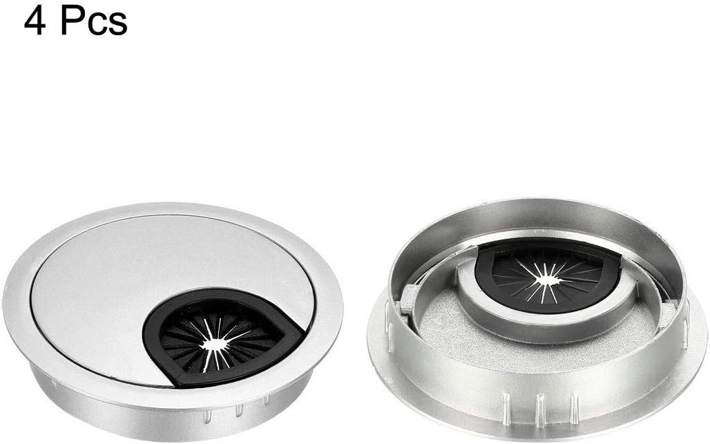 uxcell Cable Hole Cover, 2.4Inch/60mm Zinc Alloy Desk Wire Cord Cable Grommets Hole Cover for Office PC Desk Cable Cord Organizer, 4Pcs Silver Tone
