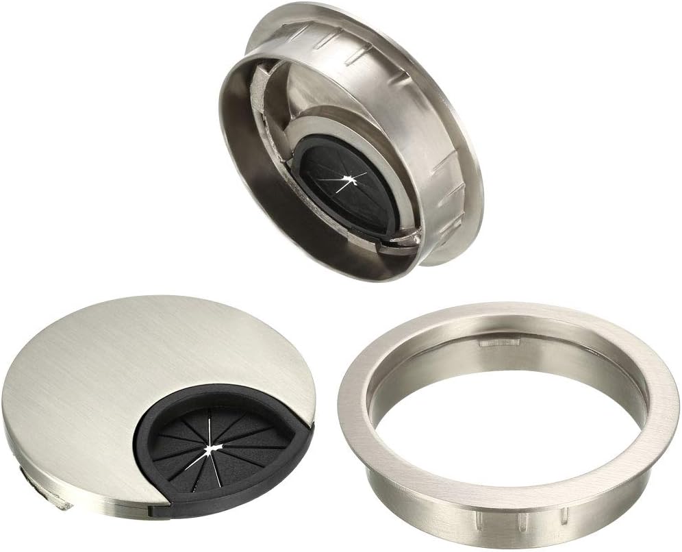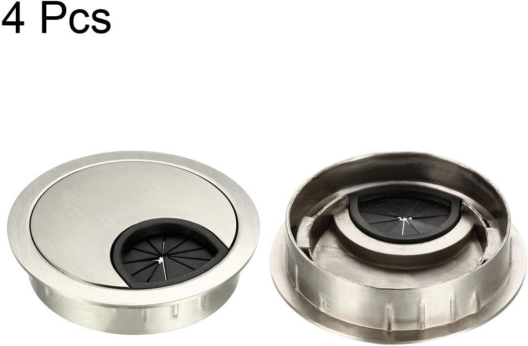 uxcell Cable Hole Cover, 2.1Inch/53mm Zinc Alloy Desk Wire Cord Cable Grommets Hole Cover for Office PC Desk Cable Cord Organizer, 4Pcs Wire Drawing Silver