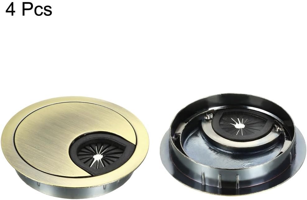 uxcell Cable Hole Cover, 2.4Inch/60mm Zinc Alloy Desk Wire Cord Cable Grommets Hole Cover for Office PC Desk Cable Cord Organizer, 4Pcs Bronze Tone