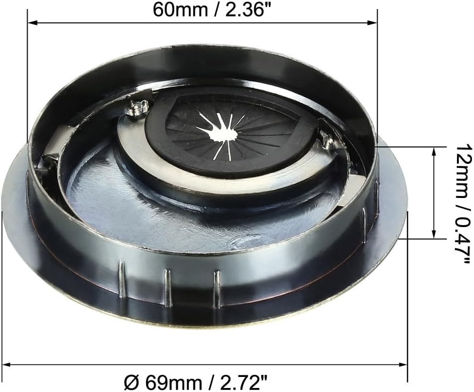 - [SIZE] - 2.72" (69mm) Max. Diameter; 0.47" (12mm) Total Height; 2.4" (60mm) Mounting Hole Diameter; Package Content: 4Pcs x Furniture Hole Covers. The colors of the product may be slightly different from the pictures due to different light and shooting locations.