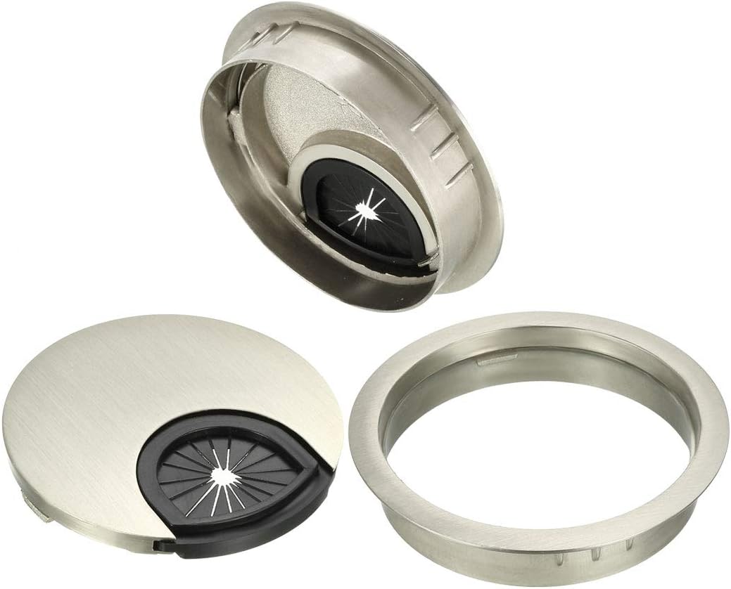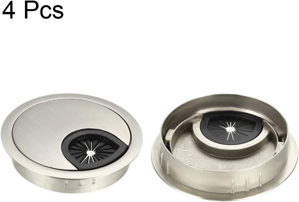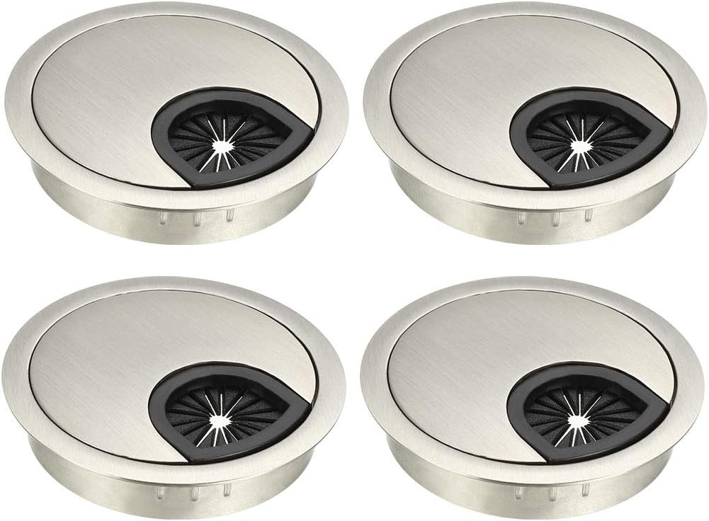uxcell Cable Hole Cover, 2.4Inch/60mm Zinc Alloy Desk Wire Cord Cable Grommets Hole Cover for Office PC Desk Cable Cord Organizer, 4Pcs Wire Drawing Silver