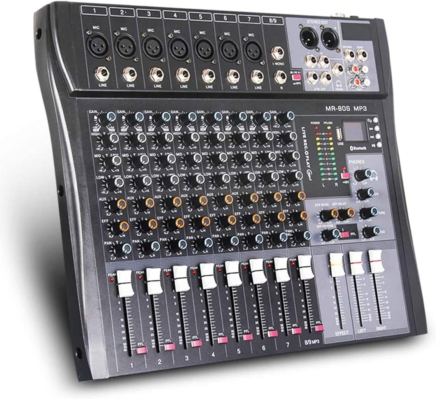 G-MARK MR80S Audio Mixer Interface USB Bluetooth Mixing Console 8 Channel 48V Phantom Power Sound Board Music Reverb For PC Stage DJ Studio Sound Controller Analog Mixer