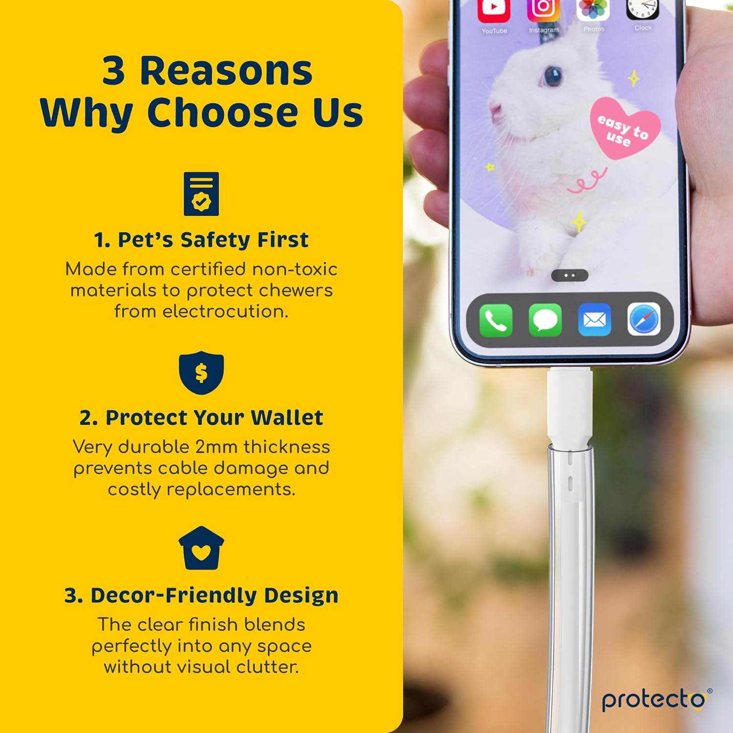 - [End the Chew-maggedon]: Tired of replacing your cords due to your pet's chewing habits? Relax and they’ll leave your cords alone with PROTECTO chewsafe cable protectors for cords! Cure your cats, dogs, & even rabbits destructive chewing with the odorless protector, leaving them uninterested in your expensive cords.