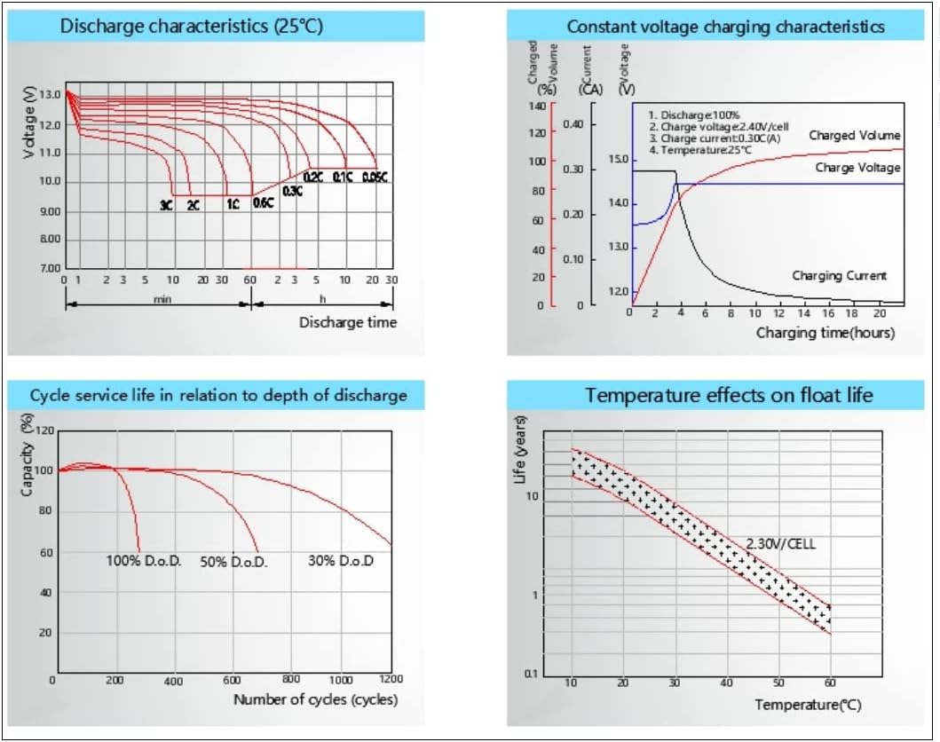 - LONGER LIFESPAN: Compared with flooded counterparts, its lower self-discharge of 1-3% per month allows long storage before recharging, but keep the battery in a charged state and operate it in a appropriate temperature are helpful for prolonging the service life.