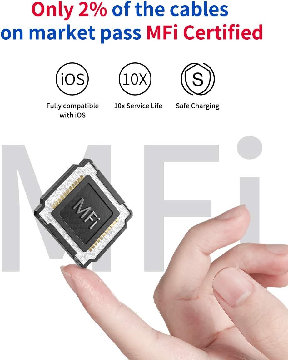 - 【Compatibility List】: This MFi certified iPhone charger cable is complete compatible with iPhone 13 / 12 / 11 / 11 Pro / 11 Pro Max / XS / XS Max / XR / X / 8 Plus / 8 / 7 Plus / 7 / 6s Plus / 6s / 6 Plus / 6 / 5s / 5c / 5, iPad Pro / iPad Air / Air 2 / iPad mini / mini 2 / mini 4 / iPad 4th gen, iPod Touch / iPod Nano 7th gen etc. NOTE: iPad Pro 12.9'' Gen3 (2018) and iPad Pro 11'' (2018) only has a USB Type C port, so this USB A to Lightning Cable won't compatible with them.
