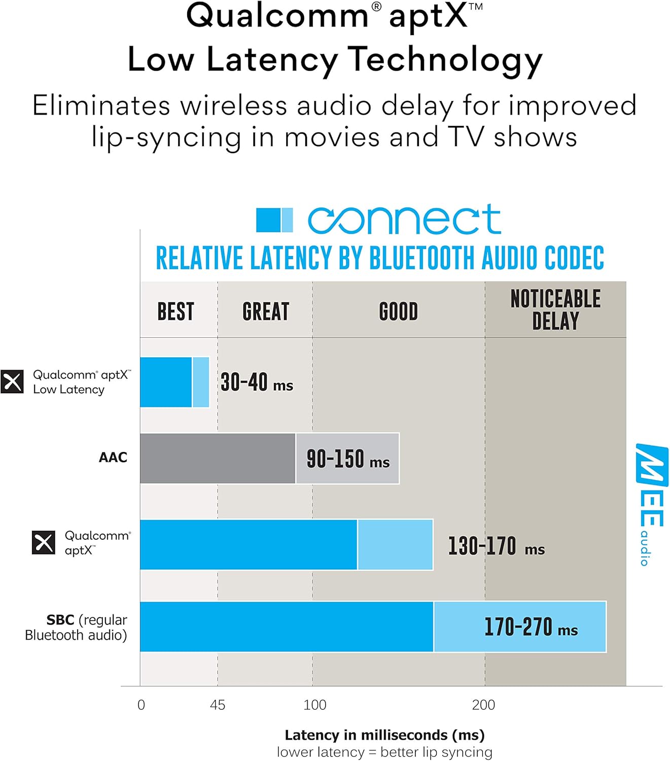 - LOW LATENCY, HIGH FIDELITY WIRELESS AUDIO: Stream high definition stereo sound wirelessly from your TV with Qualcomm aptX Low Latency technology, which ensures that audio and video are always in perfect sync for a high-fidelity, lag-free audio experience