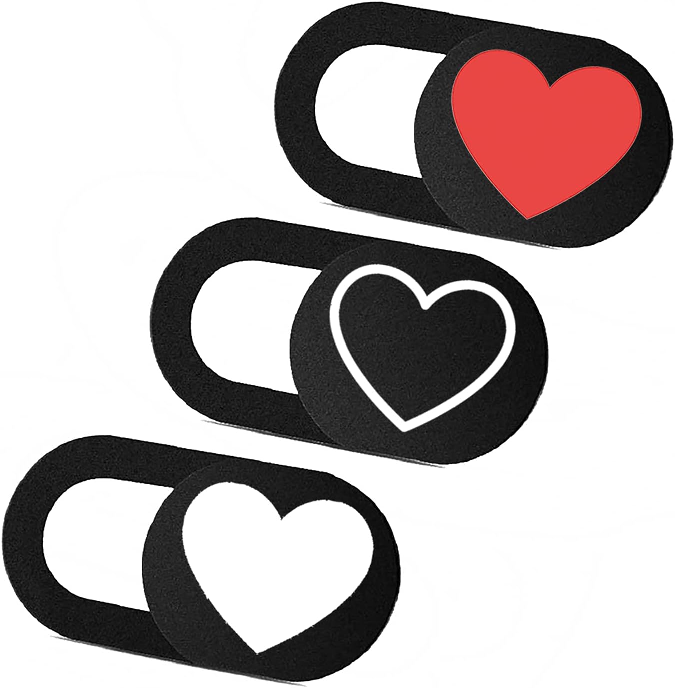 Webcam Cover 3 Pack Ultra Thin Slide Laptop Camera Cover for Echo Show, MacBook Pro, MacBook Air, Computer, Tablet, Mac Air, Chromebook, PC - Red Heart, Black