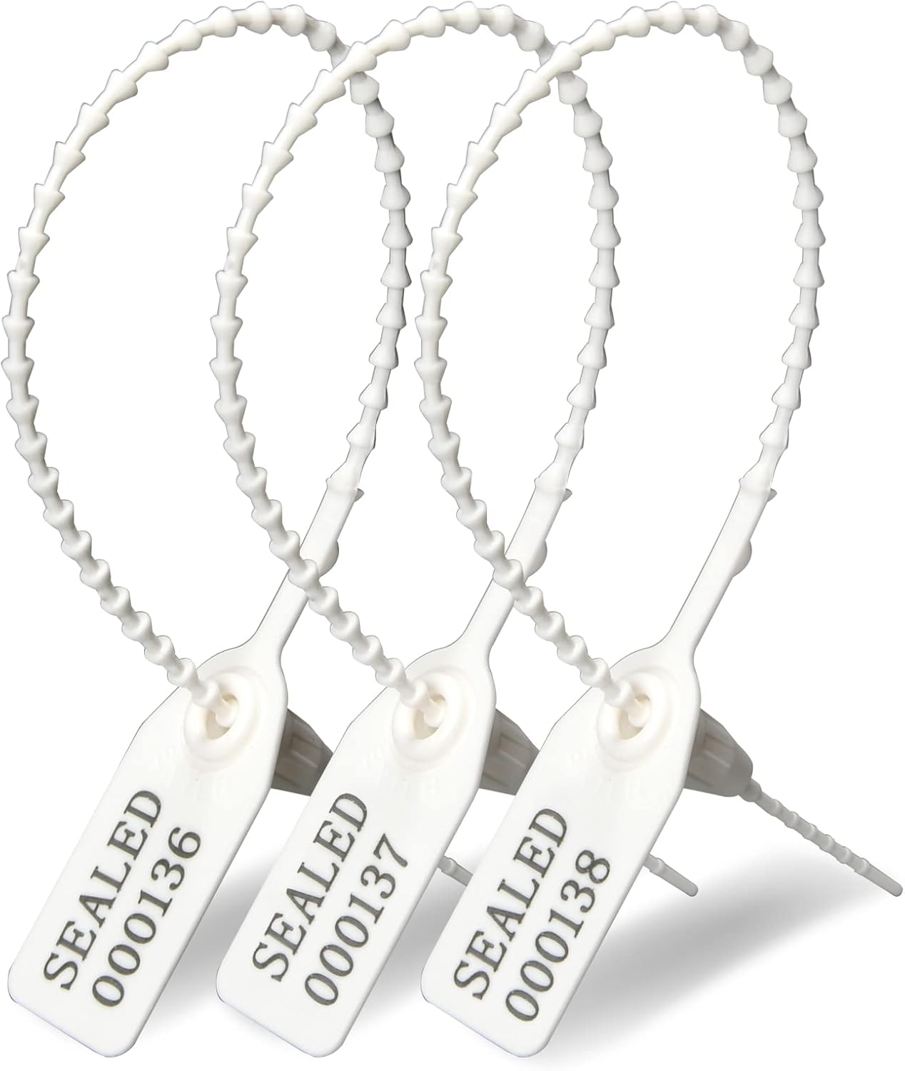 1000 Numbered Plastic Tamper Seals, Zip Ties for Fire Extinguishers Pull Tite Security Tags Disposable Self-Locking Signage - Label Tie 250mm Length (1000 PCS, White)