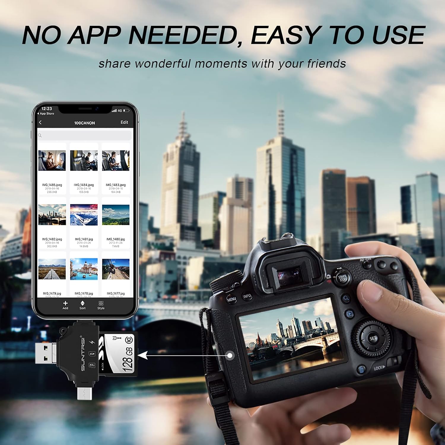 - Real-Time Sharing and Data Management: High speed two-way transmission, the sd card reader for iphone suitable for data transmission between iPhone/Android/computer and other devices, providing intelligent file viewing and management functions, browsing documents, pictures, watching videos, listening to music, etc.