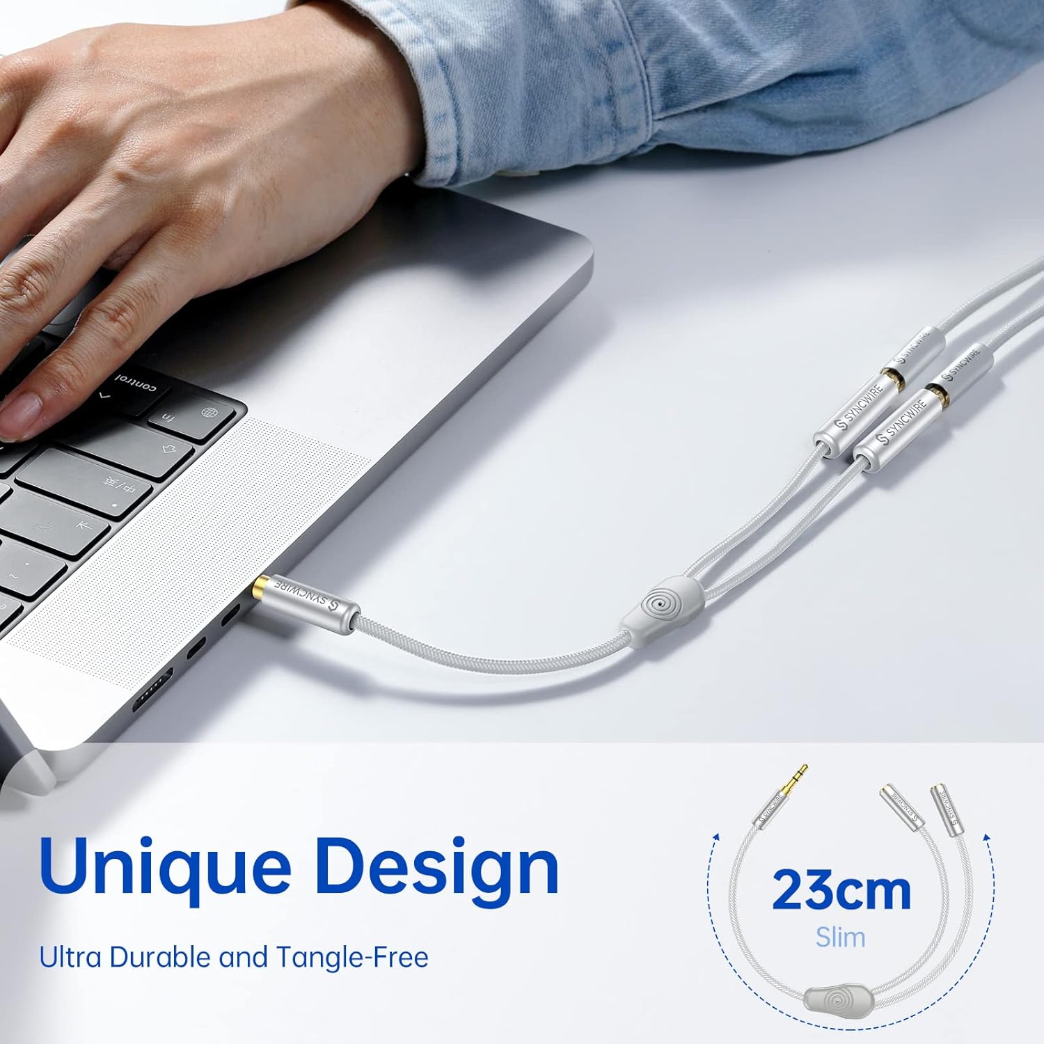SYNCWIRE Headphone Splitter, Nylon-Braided 3.5mm Extension Cable Audio Stereo Y Splitter (Hi-Fi Sound), 3.5mm Male to 2 Ports 3.5mm Female Headset Splitter for Apple, Samsung & More (No Mic) - Silver