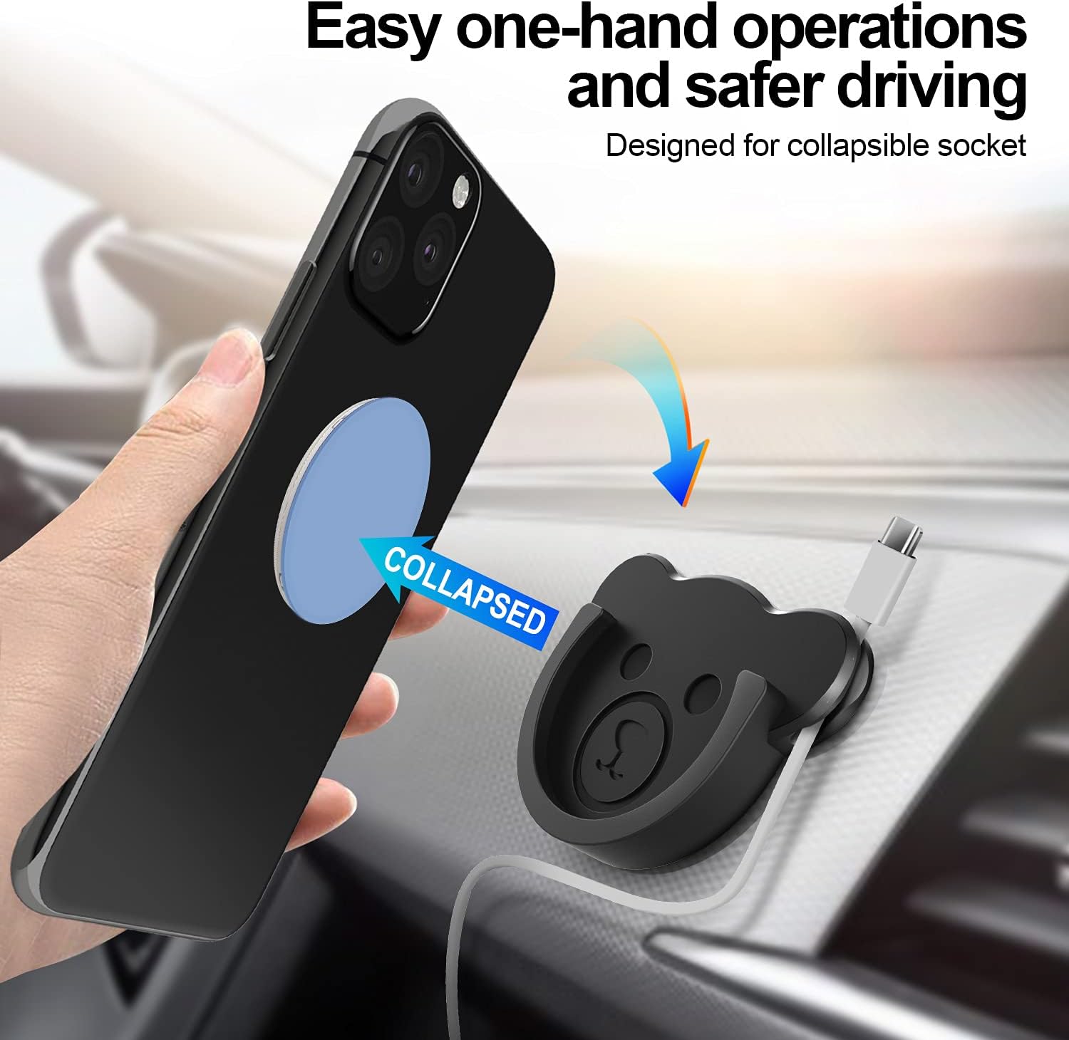 - 🐻[Designed for Collapsible Socket]: More practical car phone mount with delicate cute bear style design appearance. You could use this flexible car grip mount to work with your socket mount on the back of the phone. Such Small that's unnoticeable when not in use and can be adjustable for any directions what you want to keep the phone reach easily and your eyes on the road while driving.