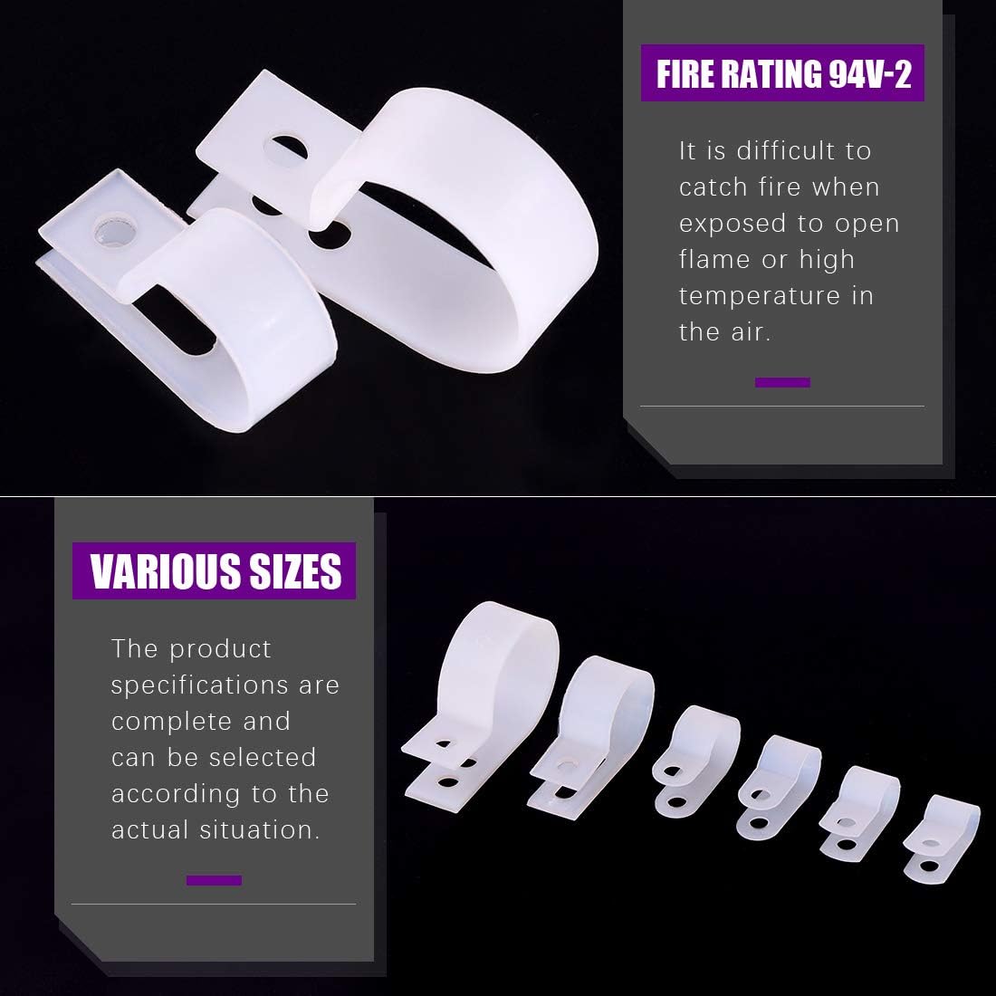 - ❤【 Equipped With Screws 】 --- In This Kit, You will get Swpeet 135 Pack 6 Sizes Nylon Plastic R-Type Cable Clamp Clips Assortment Kit, 6.4mm(1/4''), 8.4mm(5/16''), 10.4mm(3/8''), 13.2mm(1/2''), 19mm(3/4''), 23mm(1'') Nylon Clips with 135 Pack Screws for Wire Management. Screw size: Diameter: 4.2 mm, Length: 14 mm.