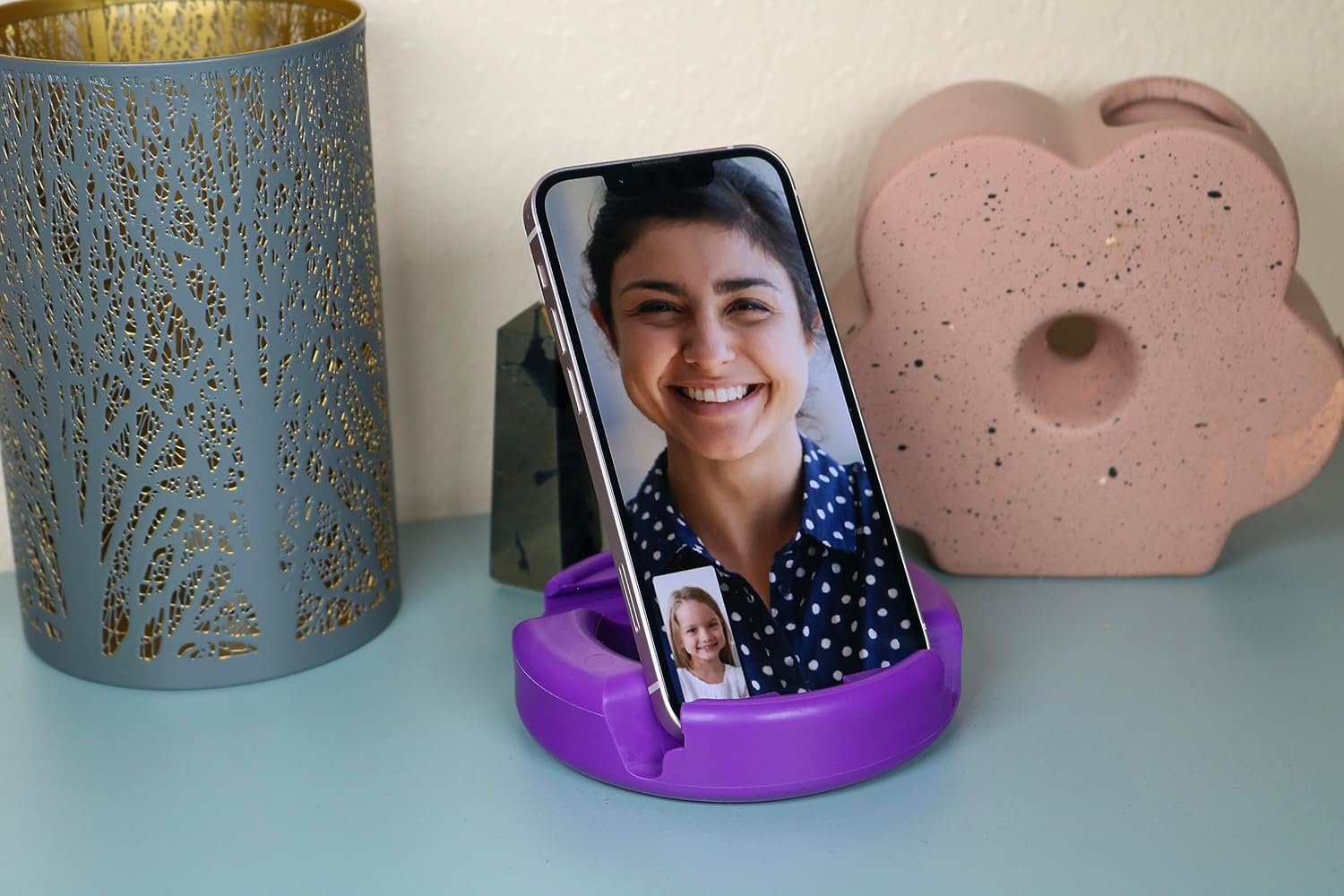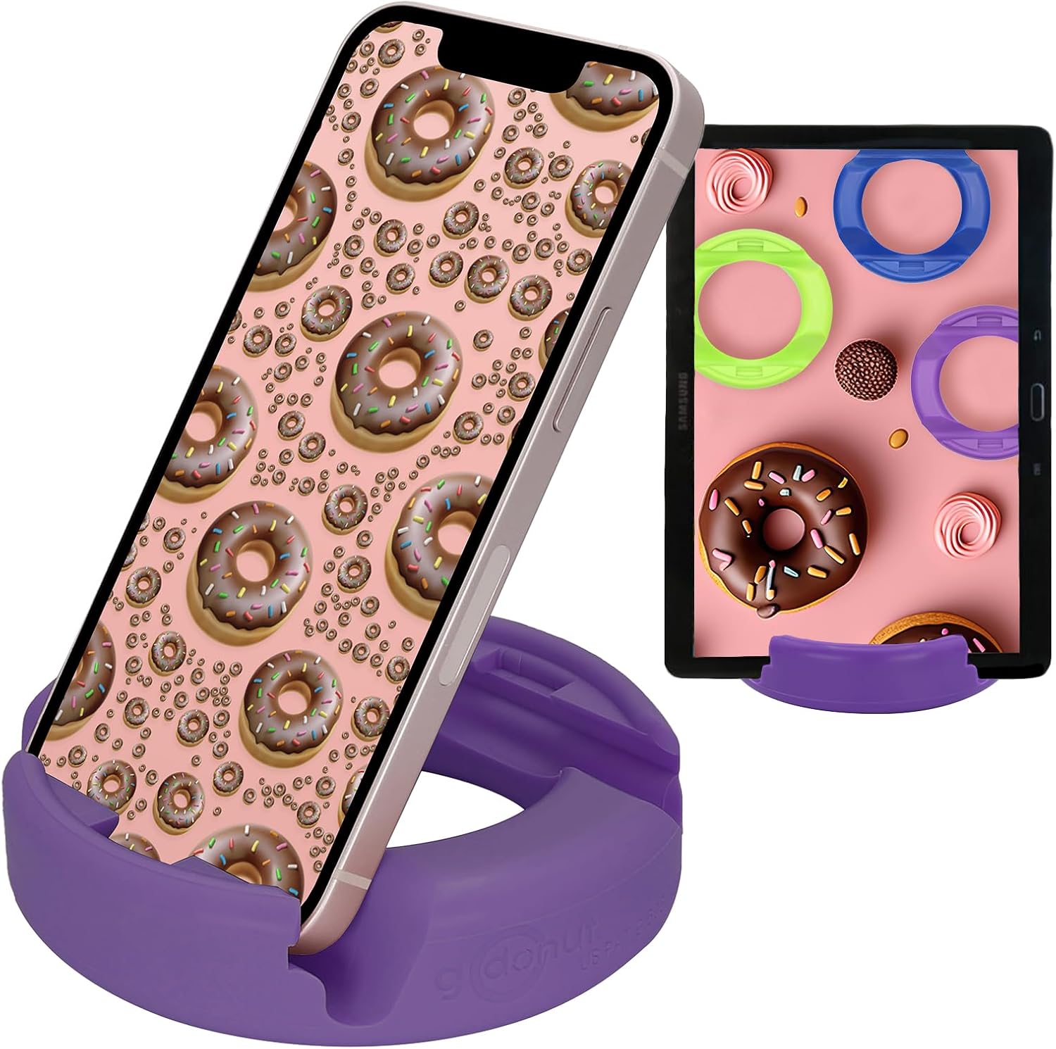 GoDonut – Phone Stand Original – Cell Phone Holder + Tablet Stand Desk Organizer – Compatible with Tablet, iPhone 16 15 14 Pro Max, Android & Most Smartphones - Purple