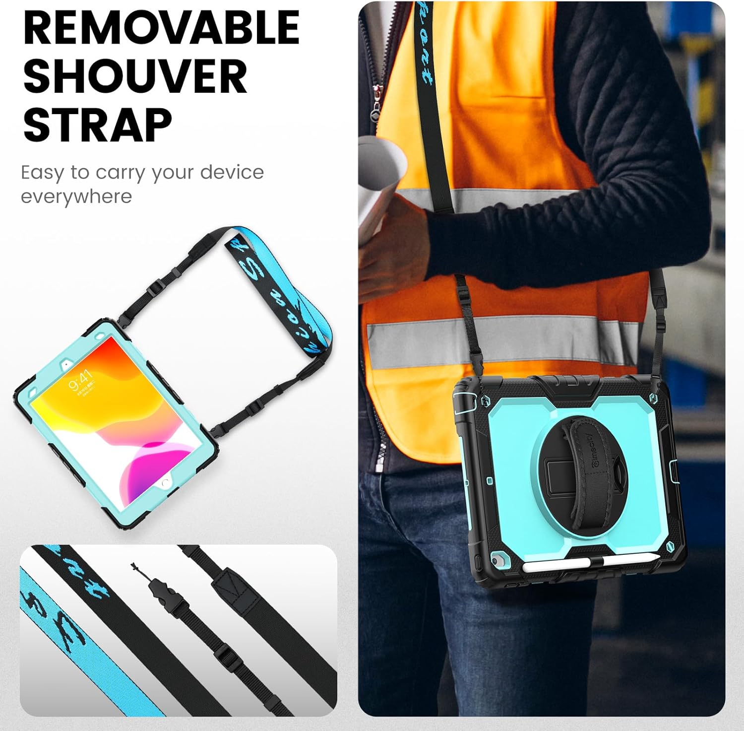 Timecity Case for iPad 9th/ 8th/ 7th Generation 10.2 inch - Heavy Duty Protective Cover with Screen Protector, Rotating Stand, Shoulder Strap & Pencil Holder | Kids-Friendly (Blue)