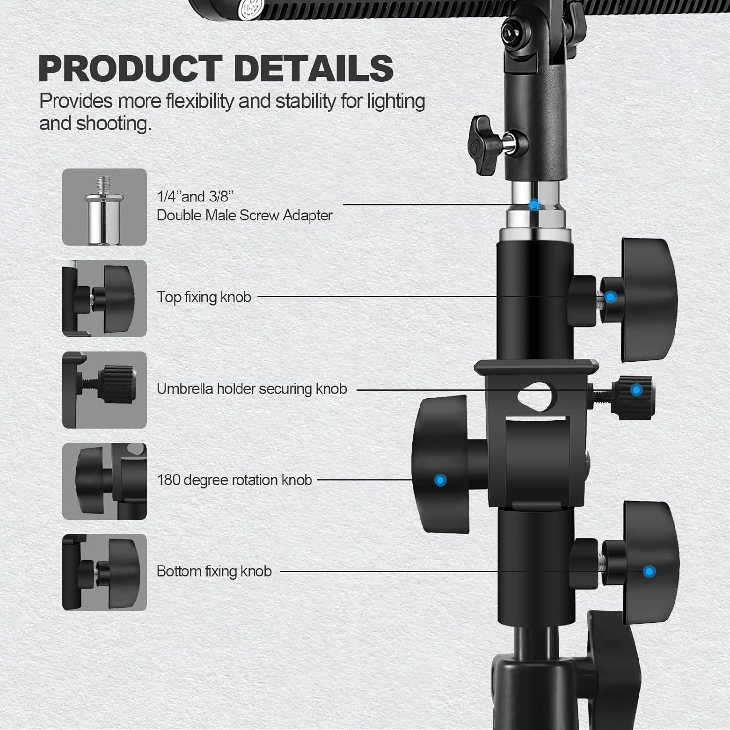 - Comes with a detachable 1/4 inch to 3/8 inch screw spigot, suitable for most LED lights, flash lights, and light stands.