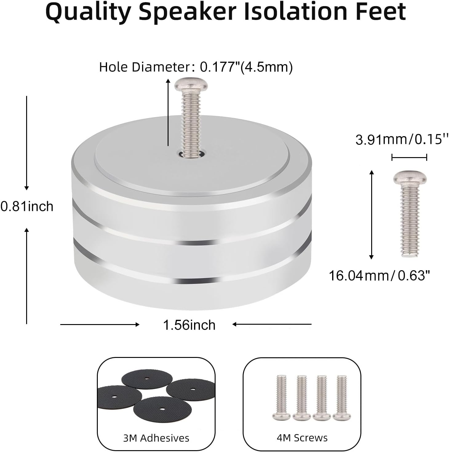 - 【With Single-sided 3M Adhesive And 4M Screws】Monosaudio adhesive speaker feet with single-sided 3M Adhesive And Screws, It Is Easy To Stick Speaker Feet To Chassis Without Drill Holes.