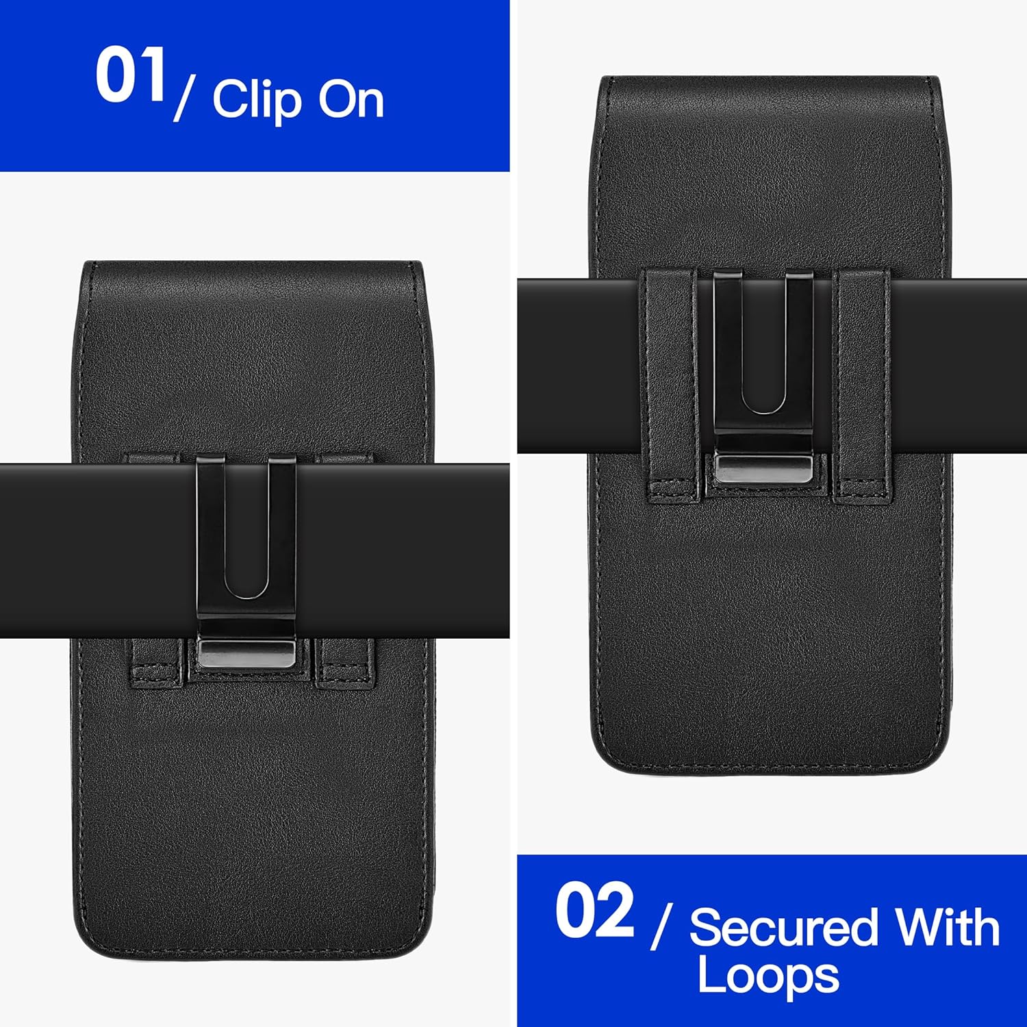- Vertical Cell Phone Holster with Dual Belt Support : This phone holster for men belt offers both a durable belt clip and a reinforced belt loop, allowing stable, hands-free vertical carry for work or everyday use.