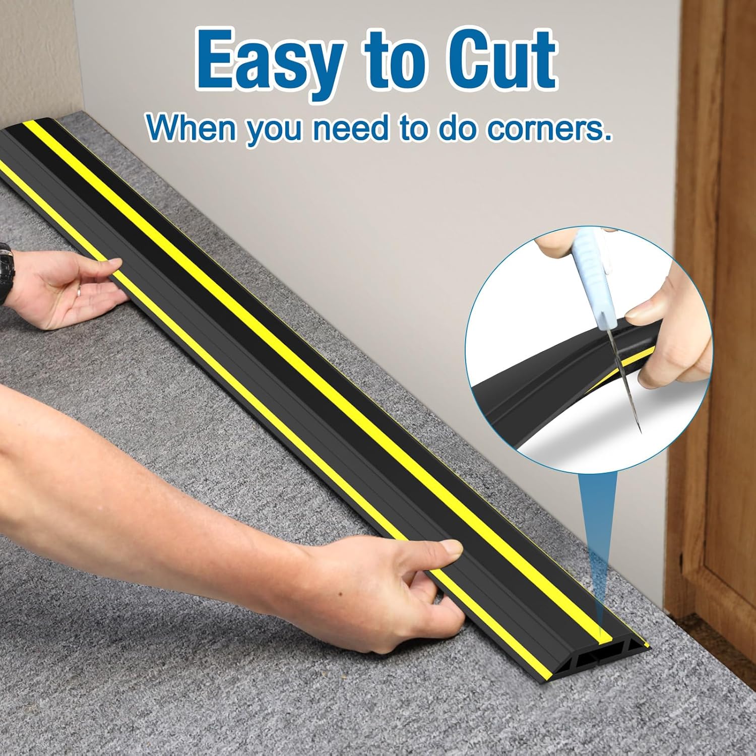 - YELLOW WARNING LINE -- 3 bright yellow stripes runs along on the top of the floor cable cover for its visibility and safety, it serves as a warning role to tell people to pay attention to that sign and in case of tripping over by accident.