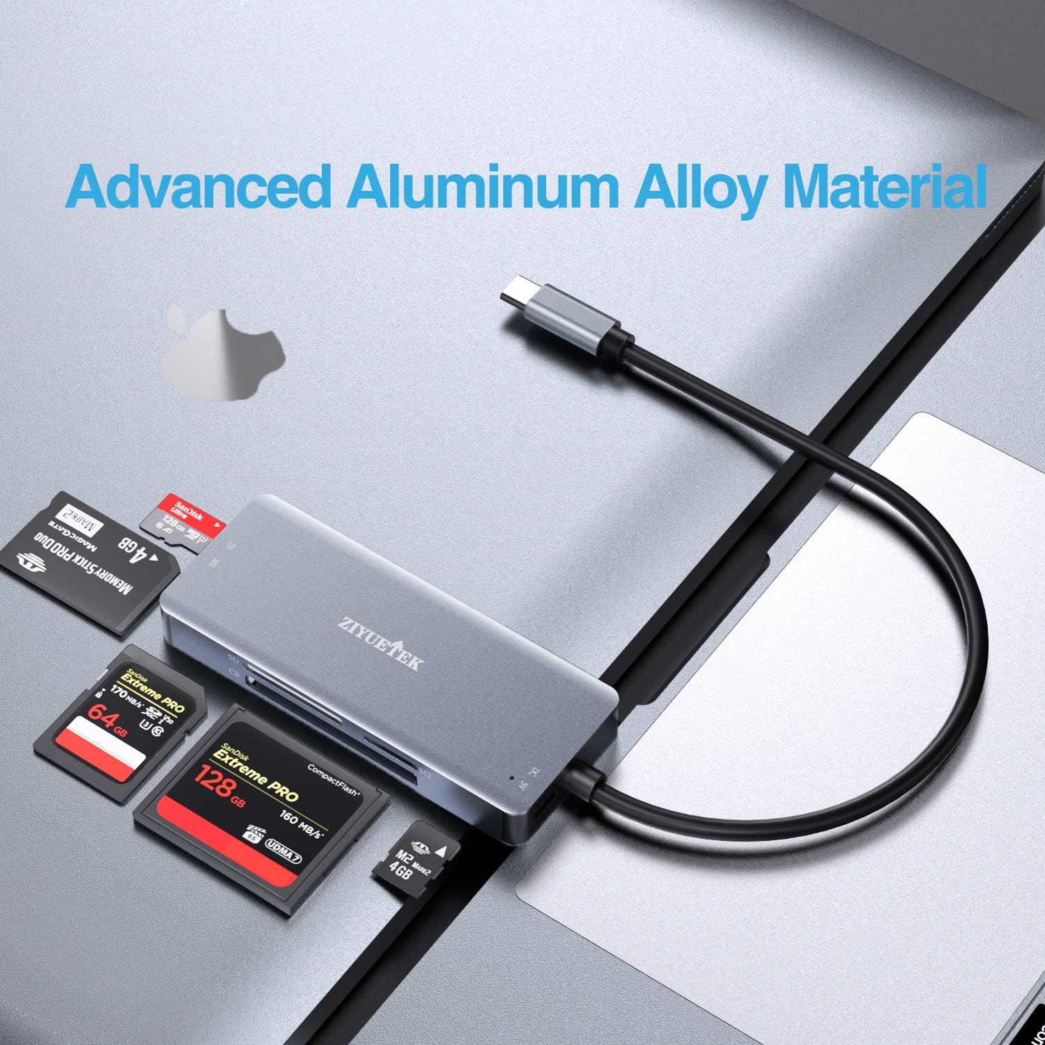 USB C SD Card Reader,5- in-1 Aluminum Thunderbolt 3 Memory Card Reader for CF, SD/SDHC,TF/Micro SD/MS/M2,CompactFlash Card for iPhone 15/16/Pro Max Android Windows MacBook