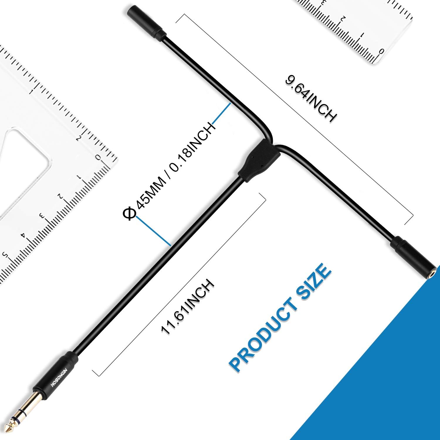 HOSONGIN 1/4 inch TRS to Dual 3.5mm Female Y Cable, 1.5ft, Black Copper Wire & Gold Plated Connectors, Compatible with Headphones
