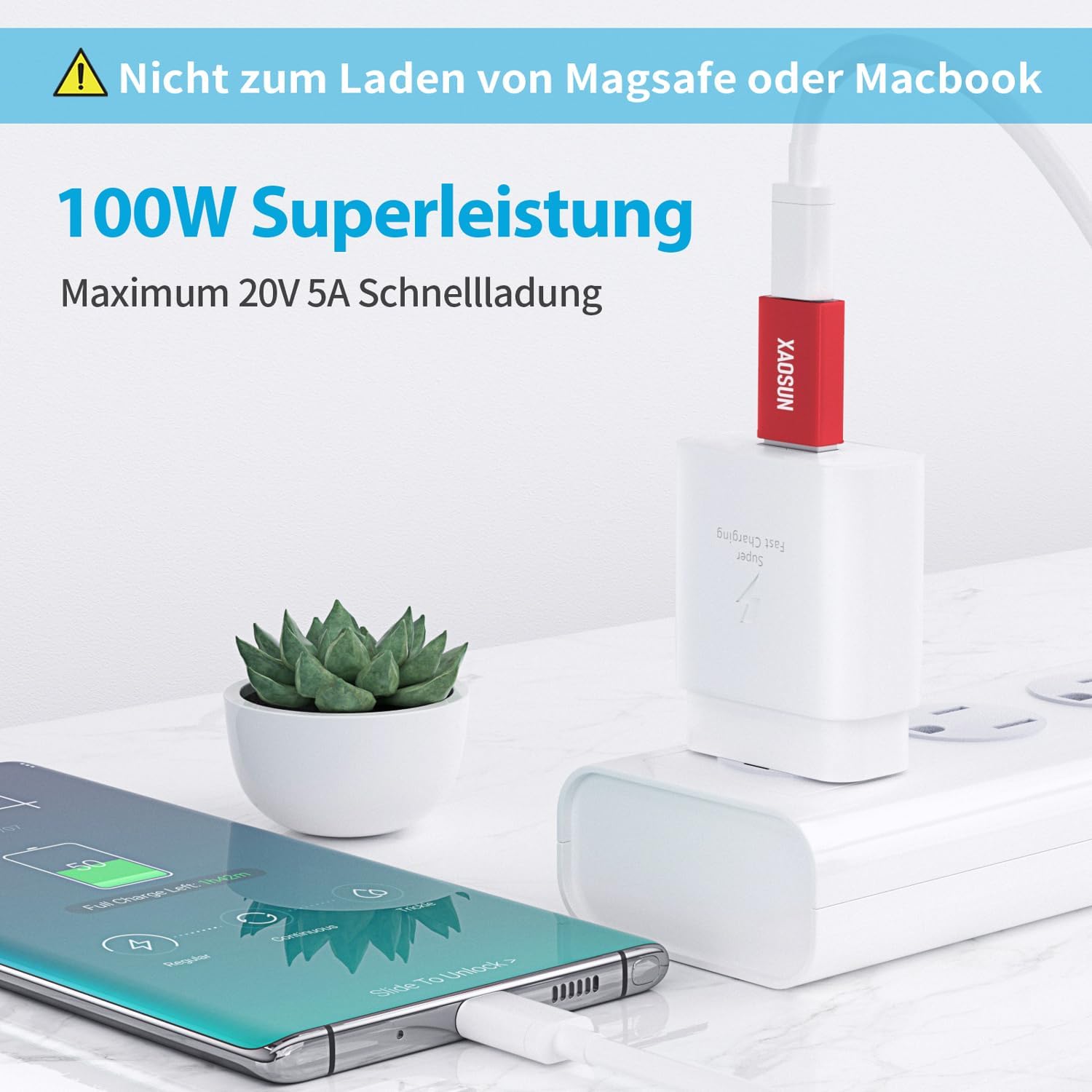 - ⚡️ Fast Charging - Built-in dual 56kΩ Pull-up resistors and supports fast-charging up to 100W 20V 5A. it charges devices faster & more efficiently. (Note: High power requires charging protocol support. Because the PD protocol is not supported after USB-A conversion, this adapter doesn't fit your 12 Magsafe Charger or charge MacBook.)