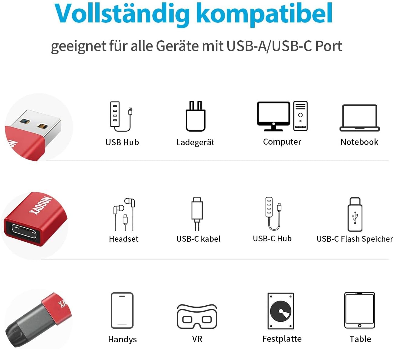 [10Gbps] USB C Female to USB Male Adapter (2-Pack), 3.1 USB A to USB C Adapter, XAOSUN One-Sided SuperSpeed Data Sync & 100W Fast Charging For iphone 15 Plus Pro Max, Laptop, Charger, Quest Link, etc.