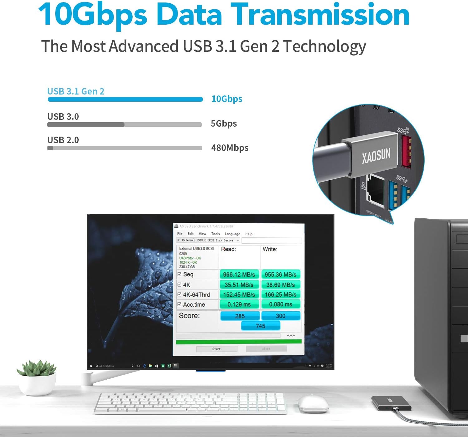 XAOSUN [10Gbps] USB C Female to USB Male Adapter (2-Pack), 3.1 USB A to C Adapter, One-Sided SuperSpeed Data Sync & 100W Fast Charging for iPhone 15 Plus Pro Max, Laptop, Charger, Quest Link, etc.