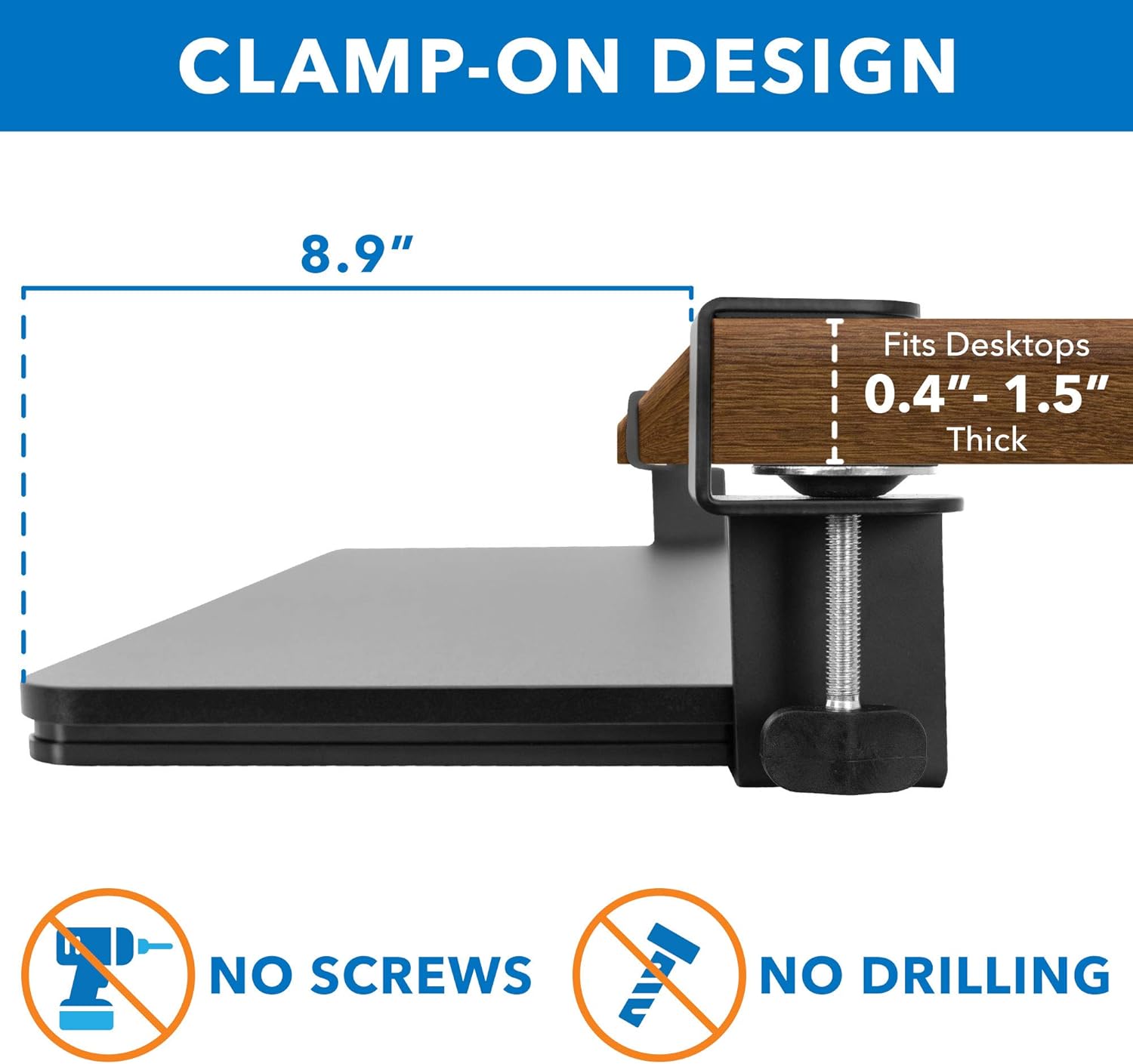 - Ergonomic Typing: Position your keyboard and mouse at the perfect height with this clamp-on tray. The retractable keyboard tray helps you achieve an ergonomic typing position, reducing wrist and shoulder strain for long work hours.