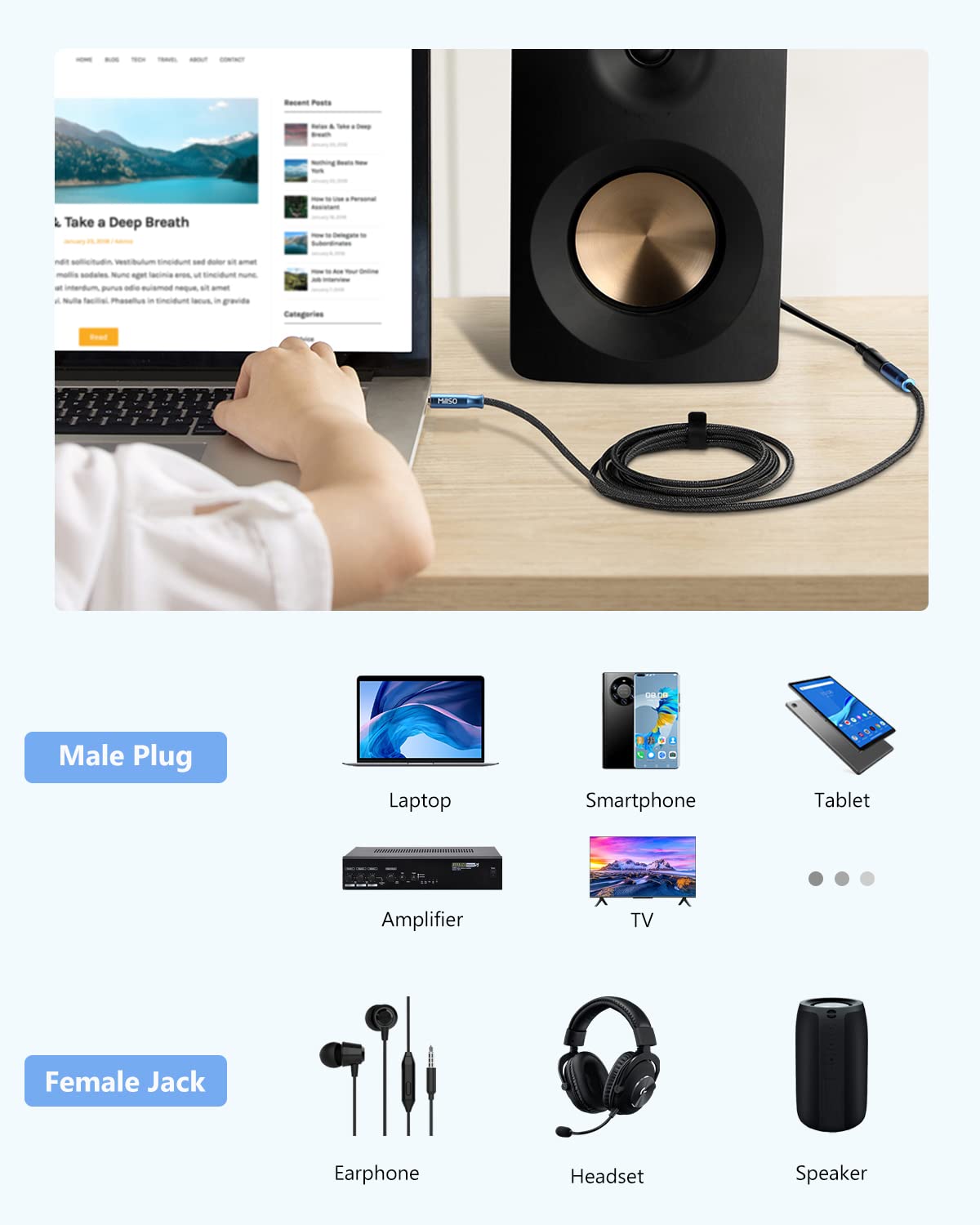 - EXTEND YOUR JOY: MillSO 3.5mm 4 poles headphone extension cable allows you to transmit audio from long-distance connections. TRRS extension is compatible with most devices with 3.5mm aux jack, like smartphones, PC, tablets, laptops, Car's radio, MP3, etc.