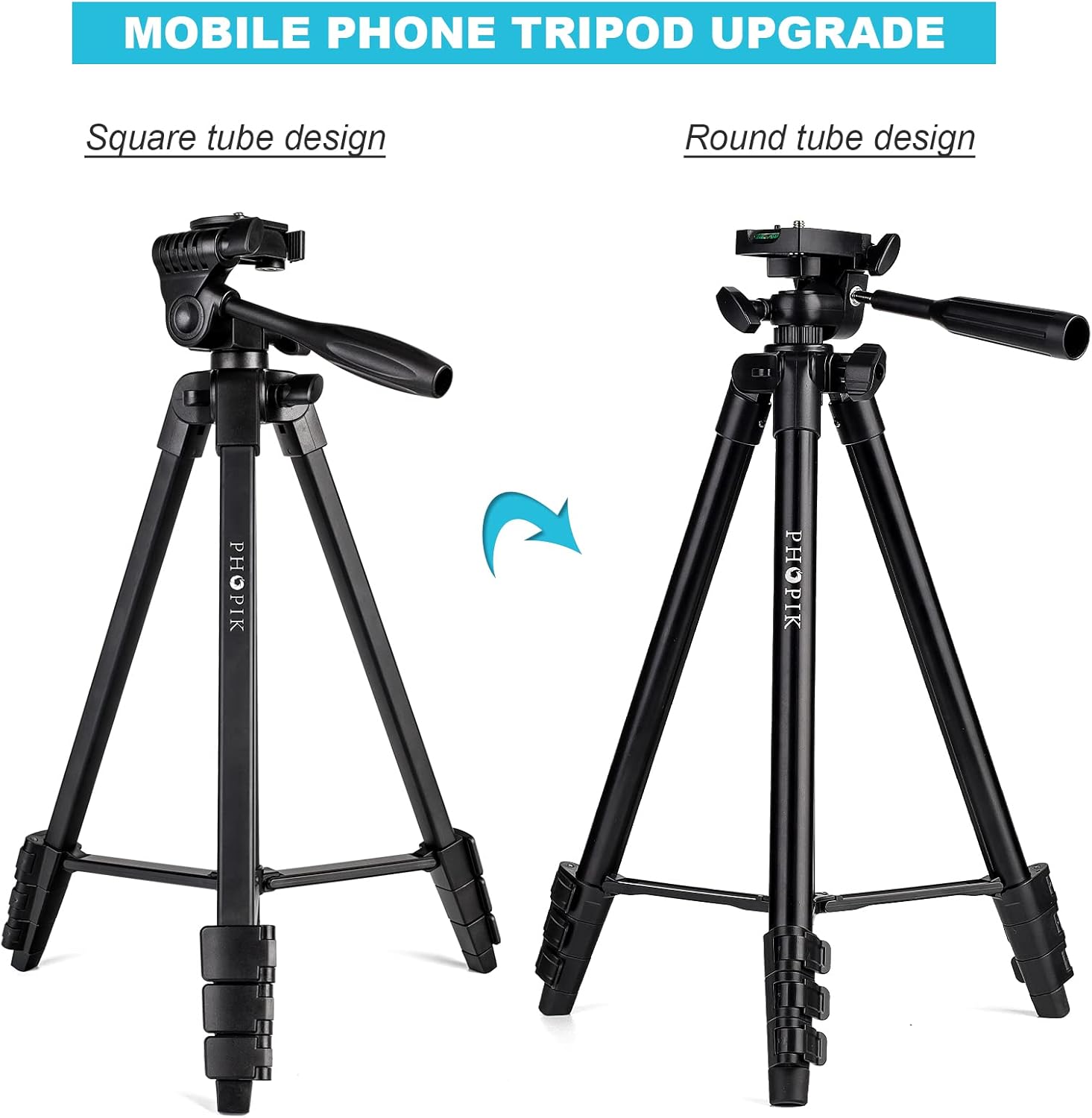- 【Mobile Phone Tripod】The tripod is equipped with a mobile phone holder and a camera quick release plate. The phone clip can be adjusted between 3.3-5.2 inches. A 1/4 screw can mount the camera. Take photos/videos with excellent stabilization while keeping your hands free. Phopik brings you our professional portfolio of all-in-one shoots to take your shoots to the next level. Great for Selfies, Group Photos, Adventure Travel, Vlogs, Youtube Videos, Podcasts, Facebook Live, Live Streaming