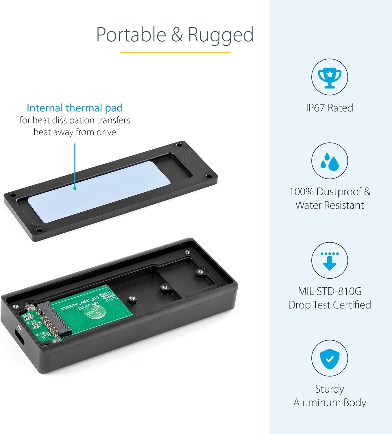 StarTech.com USB-C 10Gbps M.2 NVMe PCIe SSD Enclosure - Rugged Aluminum External M.2 PCIe M-Key Case IP67 Rated - 1GB/s Read/Write - Supports 2230/2242/2260/2280 - TB3 Compatible - Mac/PC, TAA