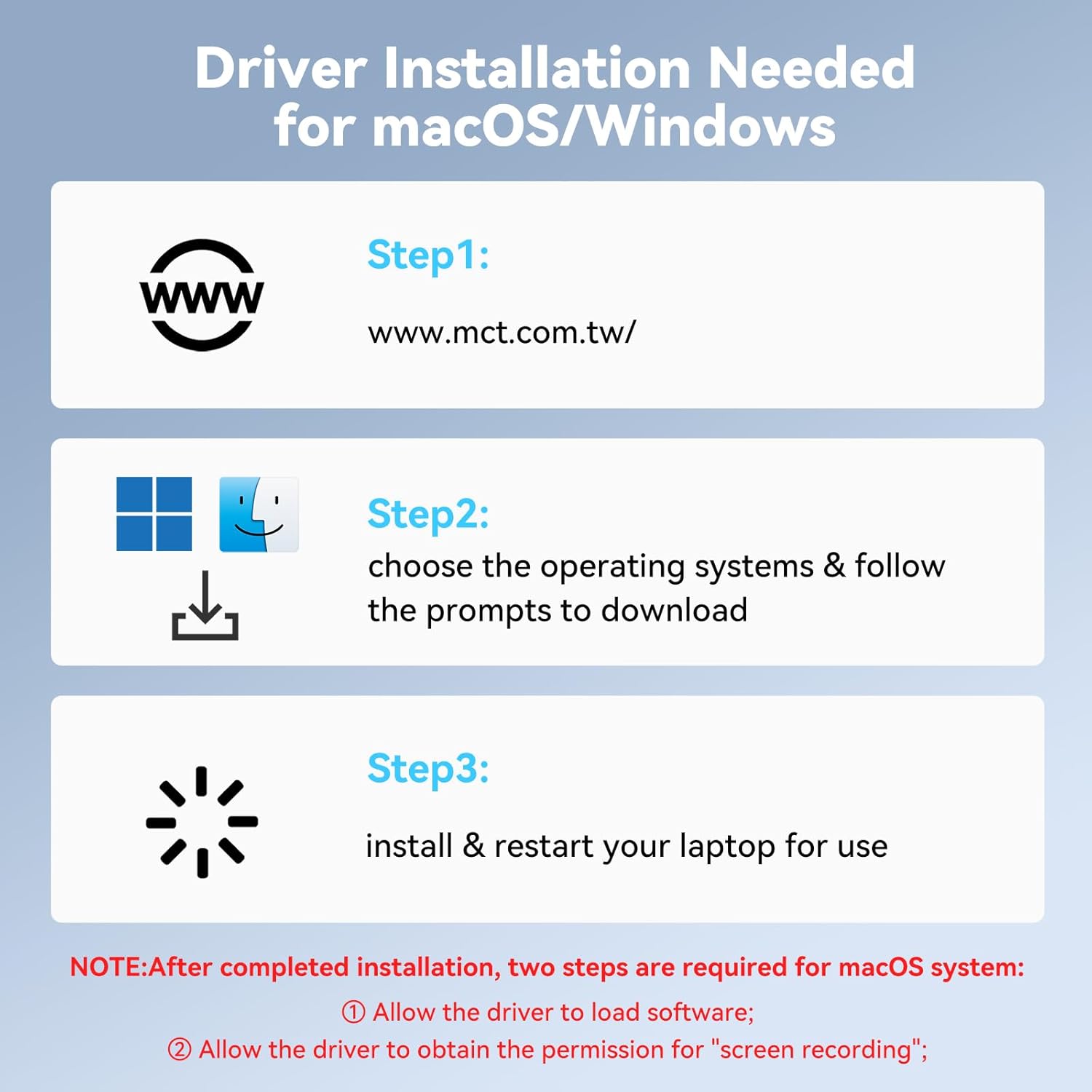 - Driver installation is required - Support macOS or newer, Windows 11, 10, 7, 8.1, Note: iOS, Linux, Unix Android are not supported.