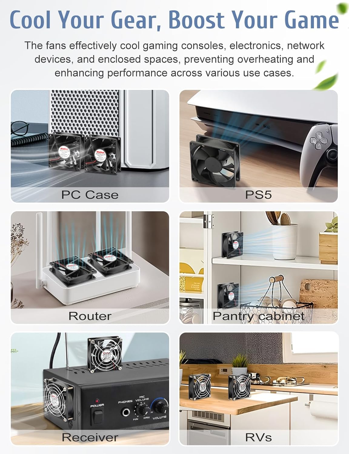 - The fan cooling systems to keep computers, home entertainment systems, and other electronics running at running at their ideal temperature and optimal speed