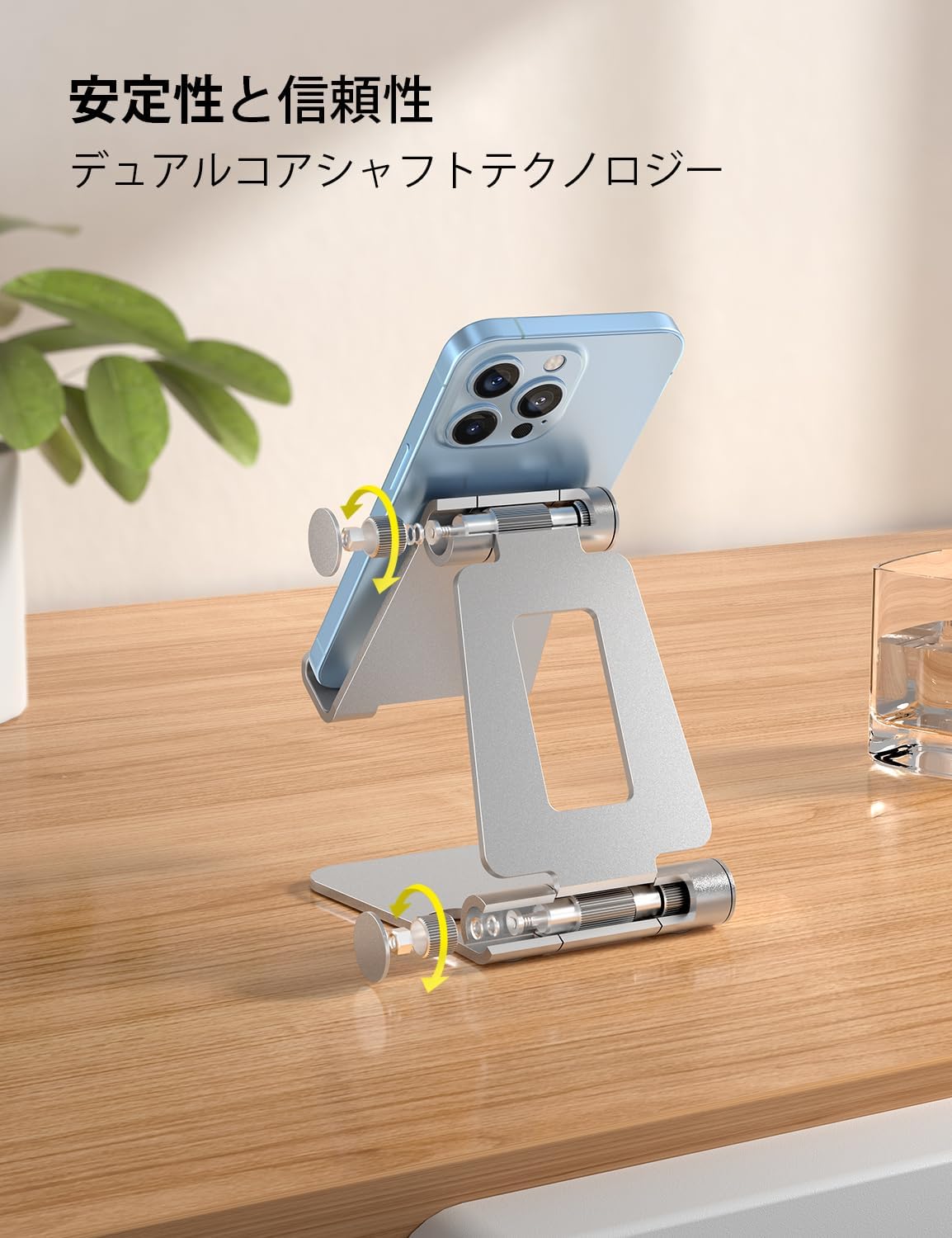 Nulaxy Dual Folding Cell Phone Stand, Fully Adjustable Foldable Desktop Phone Holder Cradle Dock Compatible with iPhone 17 16 15 14 13 12 11 Pro Max Xs Xr X 8, Nintendo Switch, All Phones - Silver