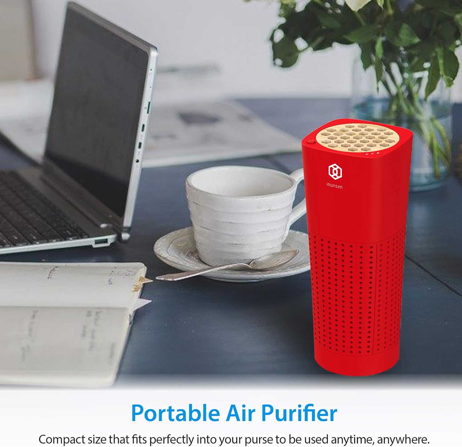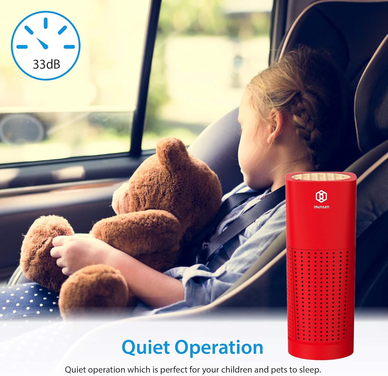 IMUNSEN M-003R True HEPA 13 Filter Air Purifier for Car, Desk, and Office with Carbon Deodorization Filter, 4-Stage Filtration, Smoke, Odors, Allergens, USB Port 5V, Made in Korea - Red