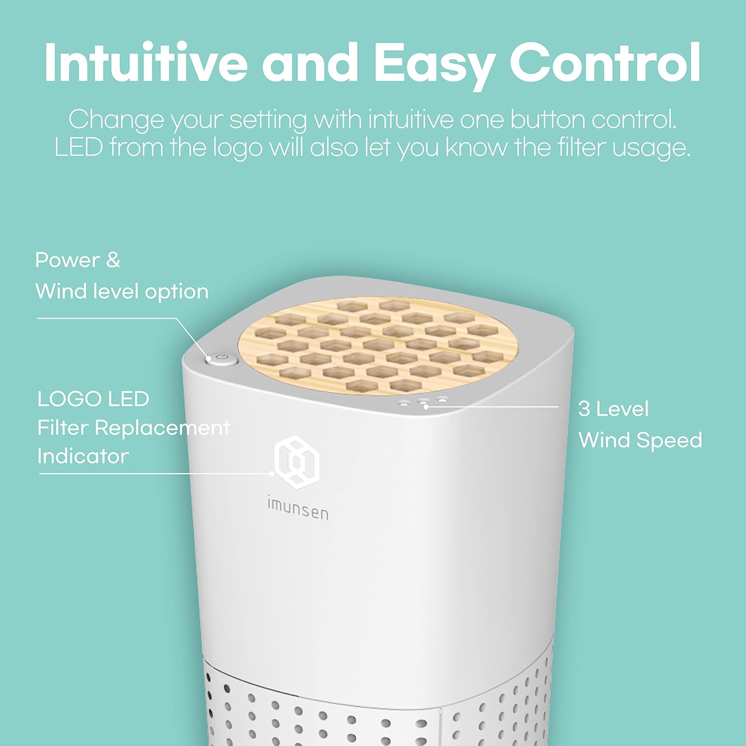 IMUNSEN M-003W True HEPA 13 Filter Air Purifier for Car, Desk, and Office with Carbon Deodorization Filter, 4-Stage Filtration, Smoke, Odors, Allergens, USB Port 5V, Made in Korea - White