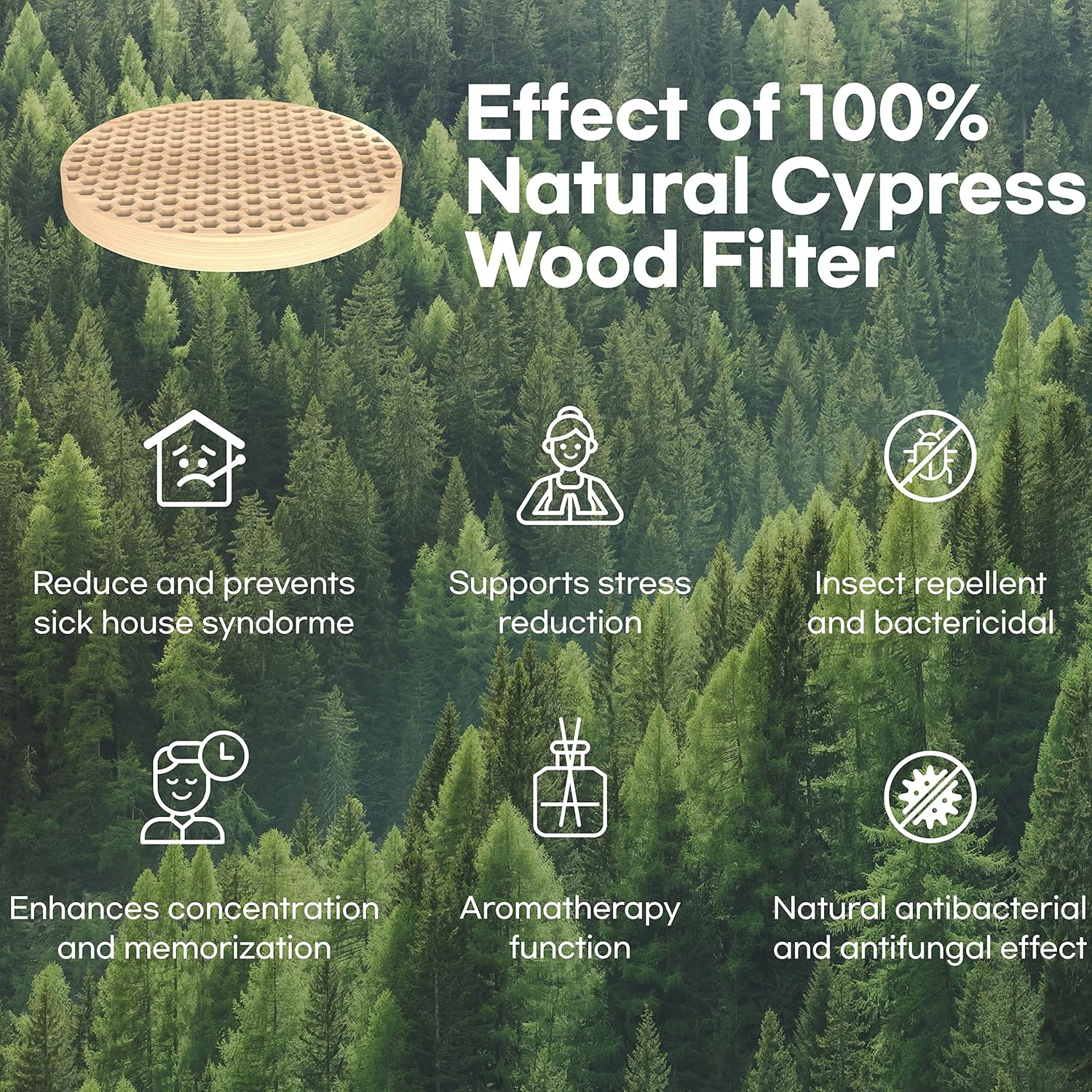 - ECO-FRIENDLY AIR PURIFIER WITH CYPRESS WOOD FILTER - The product is a 100% ozone-free product. The cypress filter is made chemical-free. VOVO’s air purifiers feature the world’s first 100% cypress filter, providing a natural antibacterial and antifungal effect with aromatherapy, stress relief, and reduced risk of sick building syndrome.