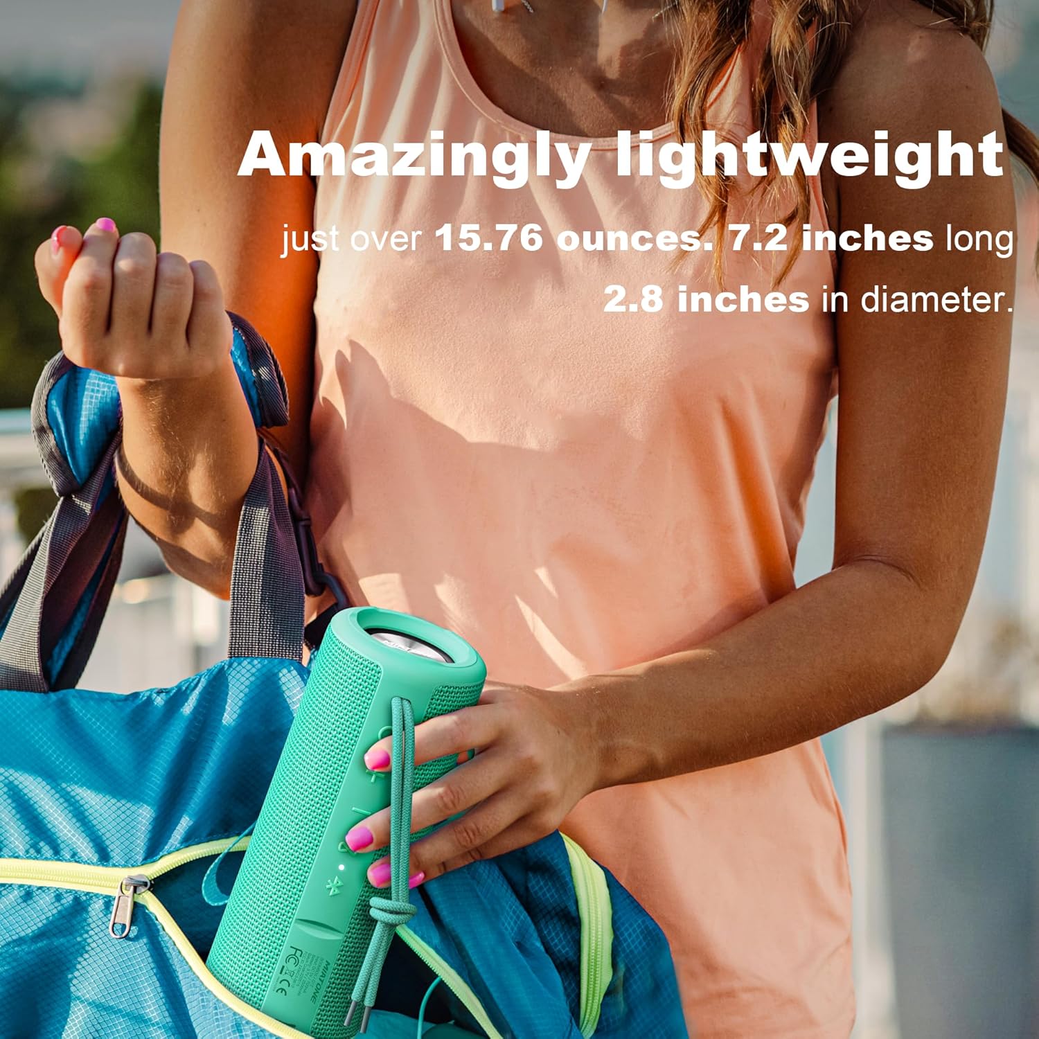 - Rugged & Anti-Slip Design – The mesh fabric exterior ensures a secure grip, even on the go. Soft silicone end caps absorb shock from drops, making it more durable than hard plastic speakers. Perfect for outdoor adventures—camping, beach trips, poolside, golf, and more.