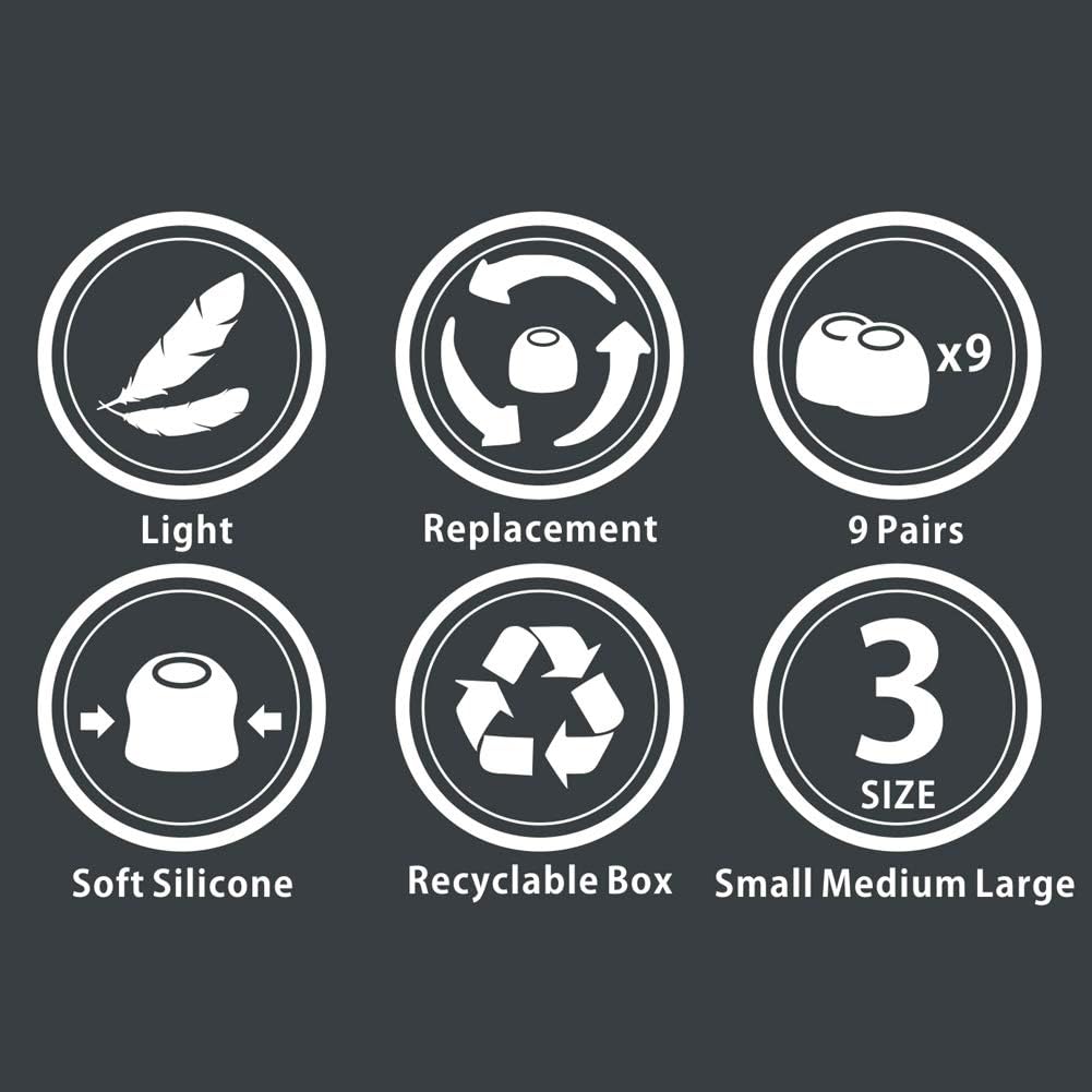 Brandless Silicone Earbud Tips Replacement Earbuds Cap Eartips Tips Eargels 9 Pairs SML
