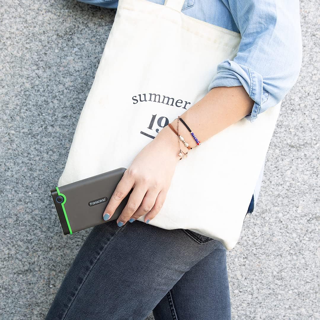Transcend 4TB SJ25M3, USB 3.1 Portable Hard Drive Rugged, Anti-Shock Resistant, Compact and Lightweight with Lightning-Fast Speeds, One Touch Backup Button, Iron Grey - TS4TSJ25M3S