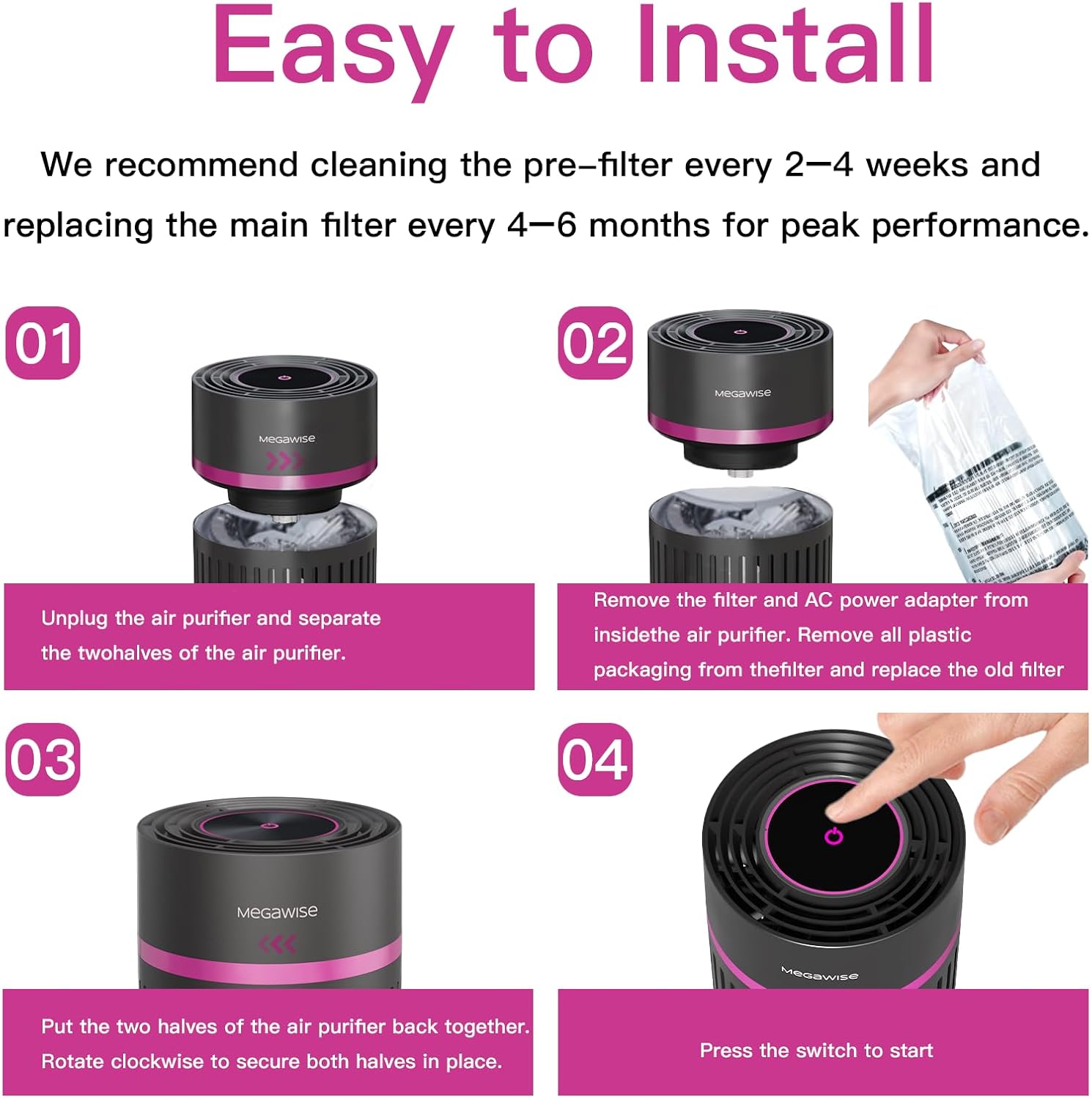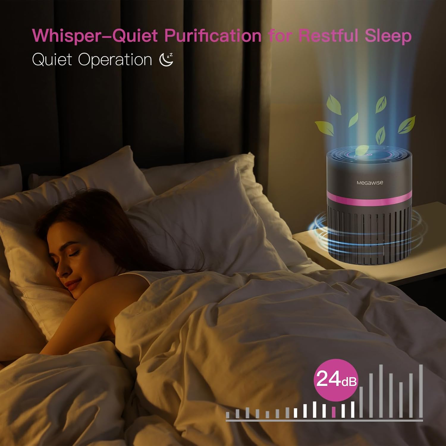 MEGAWISE Office Air Purifier with 3-in-1 HEPA Filter Desktop Air Cleaner for Smoke, Dust, Pollen, Pet Dander, HEPA Air Purifier for Home and Bedroom, 100% Ozone Free (Available for California)