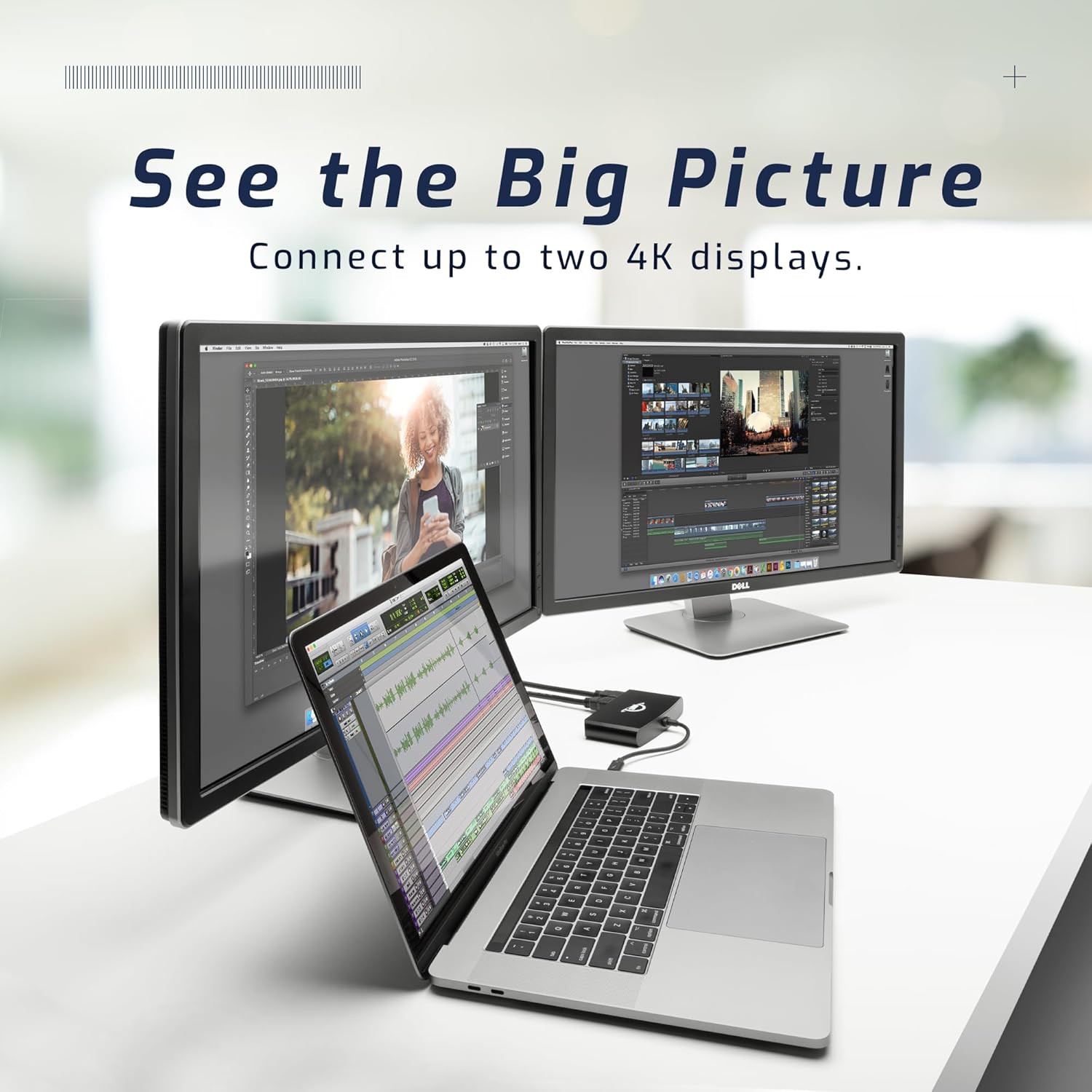 - Dual display support, including available resolution and refresh rates, is dependent on host hardware and drivers; Silicon M1 Pro, M1 Max, M1 Ultra Mac, M2 Pro, M3 Ultra models, Intel-based Mac models, and Thunderbolt 4 PCs can support up to two displays at up to 4K @ 60Hz via Thunderbolt; silicon M1 and M2 Mac models can support one external display up to 4K @ 60Hz via Thunderbolt
