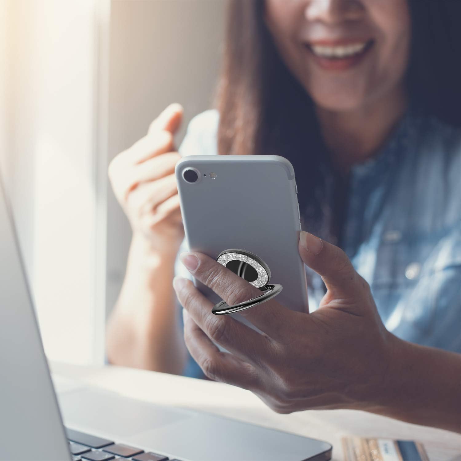 Cell Phone Ring Holder Stand, Cell Phone Grip Holder, Adhesive Phone Grip for Phones and Cases. (Glitter Black)