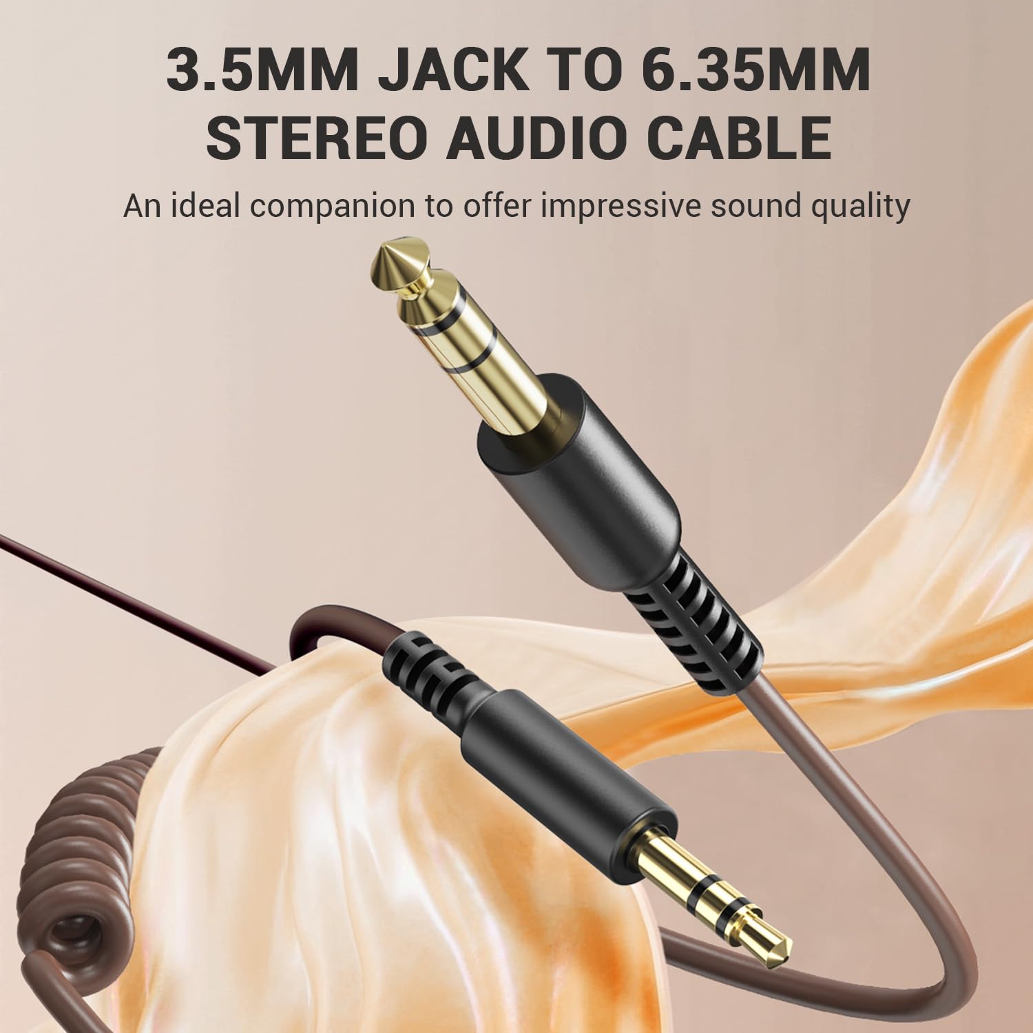OneOdio 6.35mm to 3.5mm 6.6-9.8FT Stereo Adapter Cable Compatible with AMPs, Electronic Keyboards, Mixers, Guitars and Pro10/Pro30/Pro50 Headphones of OneOdio-Brown