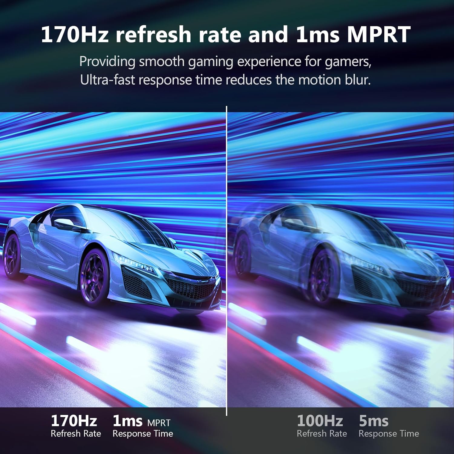 - Powerful and Strong Connections: Featuring with two HDMI inputs as well as two DP ports, you can connect multiple devices to the monitor. DP port supports up to impressive 170Hz refresh rate, while HDMI ports perform at up to 144Hz refresh rate, providing the pro-level gaming experience for the users.