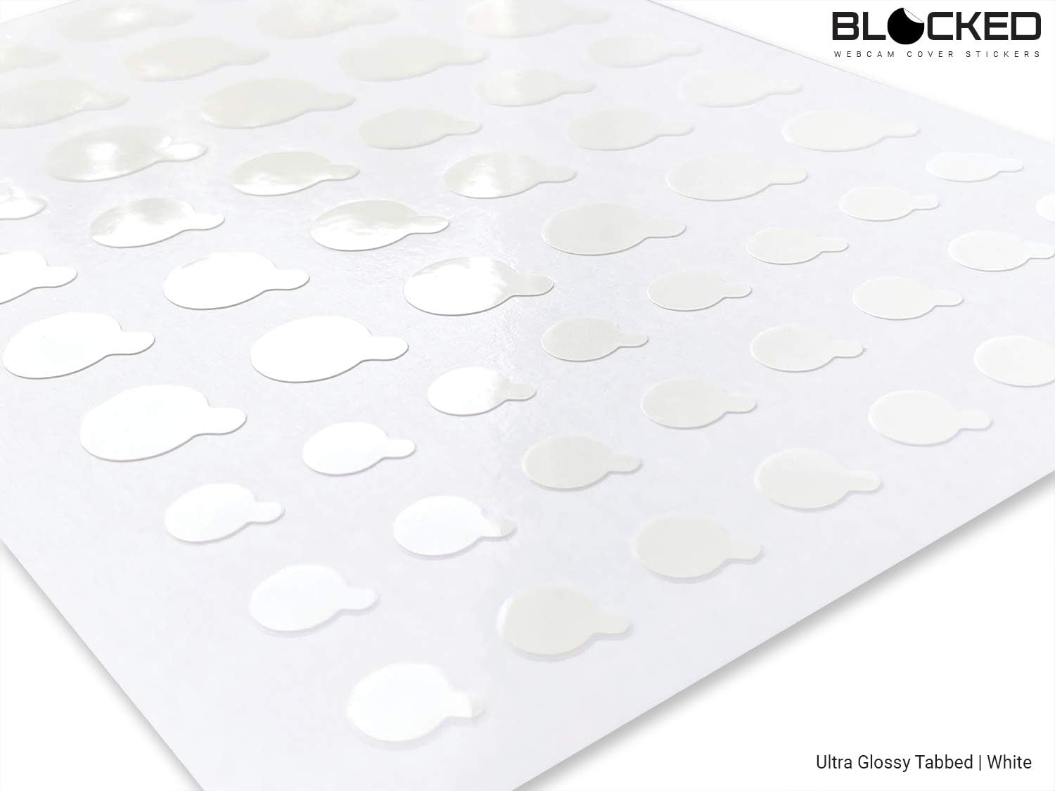 BLOCKED Stackable Webcam/Camera Vinyl Covers | 57 TabbedLow-Tack Restickable Webcam Sticker | Multiple Sizes | White 57-Pack Tabbed (Ultra Glossy)